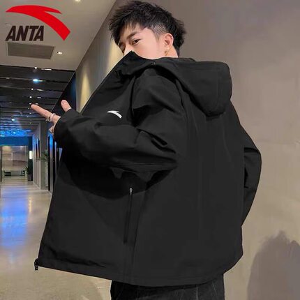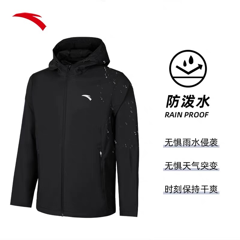 安踏外套男装连帽2025新款春秋梭织防泼水冲锋衣夹克旗舰店运动服