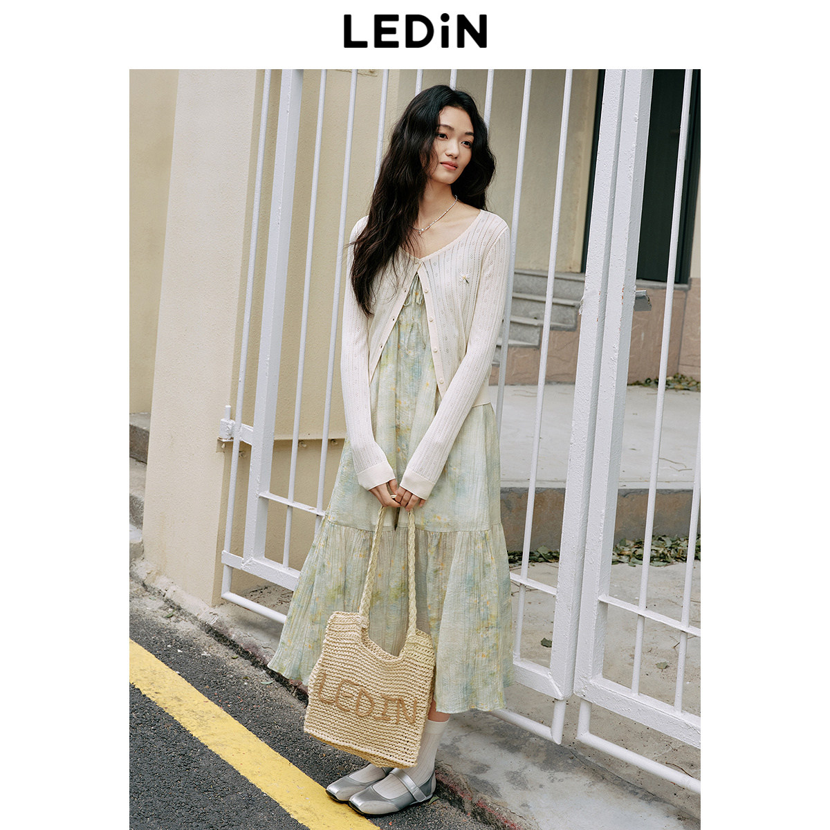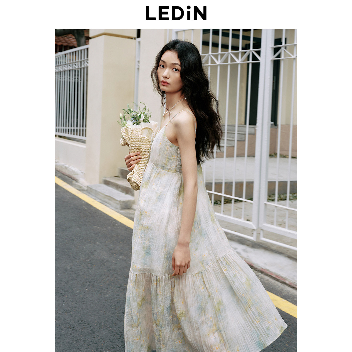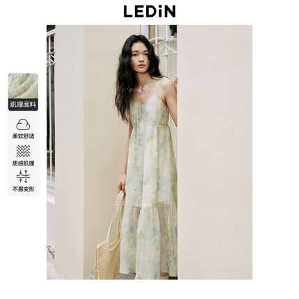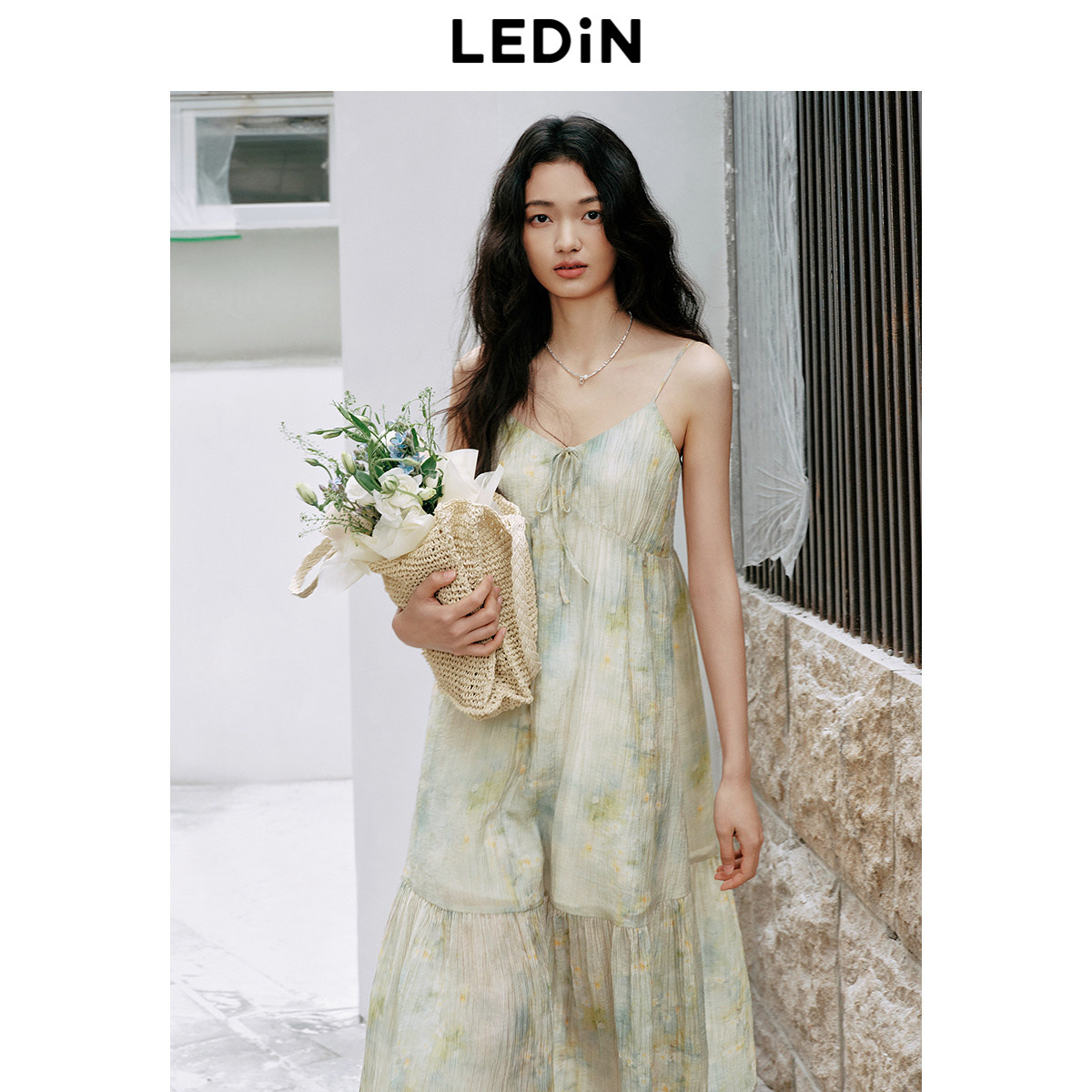 【植物系】乐町小雏菊连衣裙女装2025年夏季新款薄荷绿长裙吊带裙