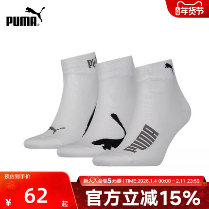 PUMA彪马袜子男袜女袜休闲袜新款运动透气舒适短筒袜三双装907881