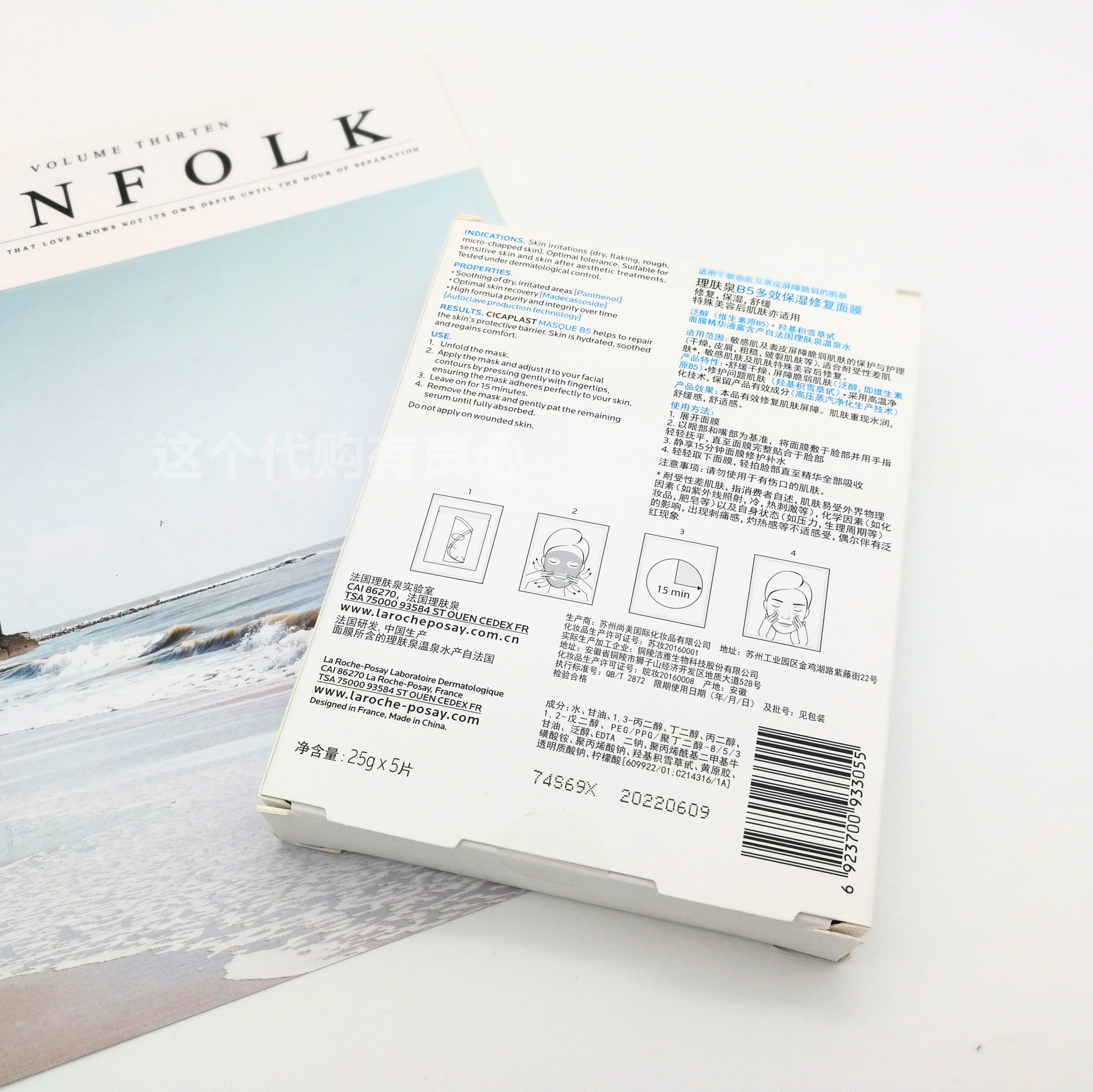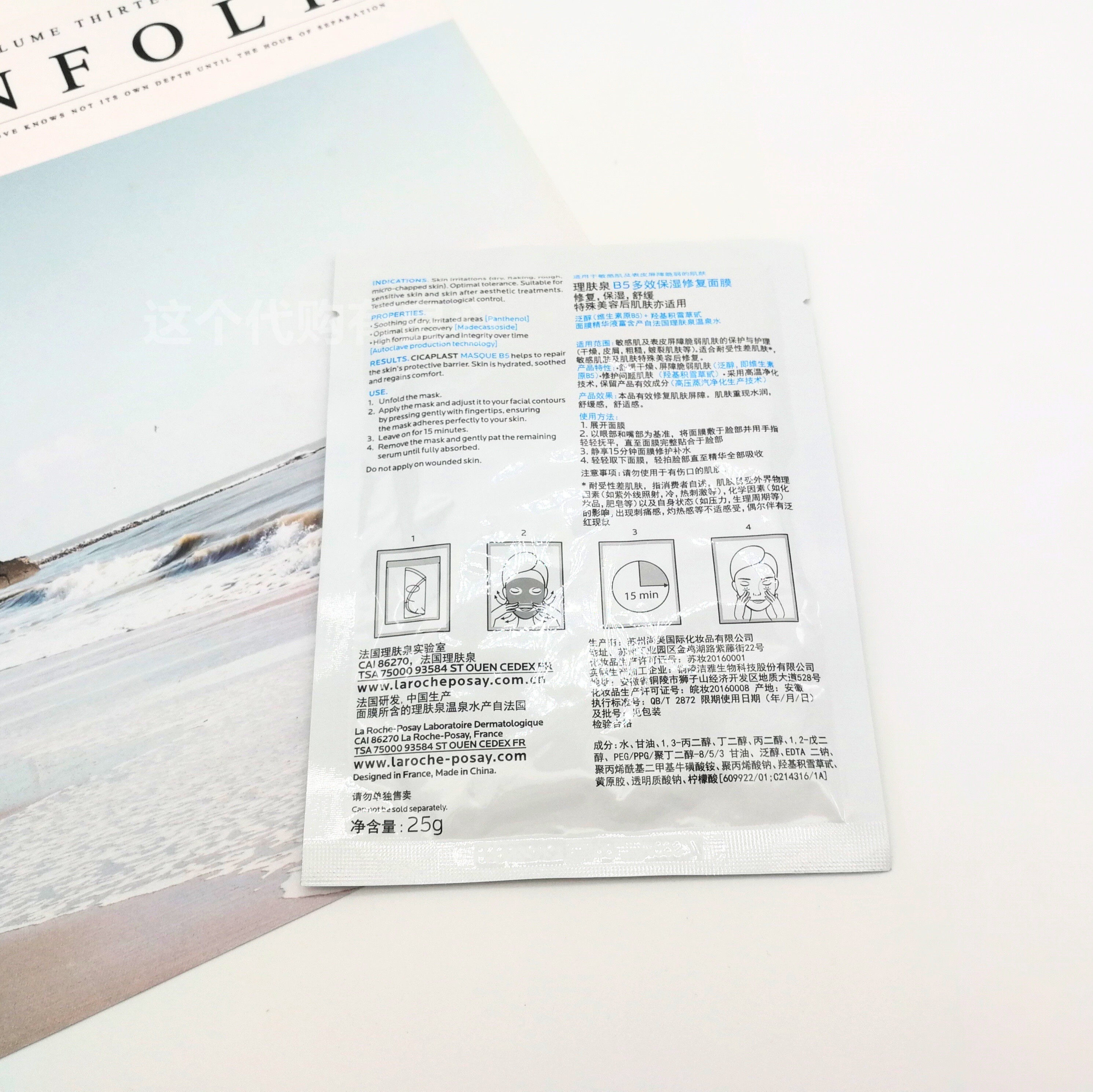 10片!理肤泉b5多效修复面膜25g保湿舒缓肌肤淡化痘印温和去红
