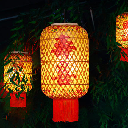 吊灯油纸灯笼中式火锅店装饰灯笼港式茶餐厅仿古复古潮汕灯笼竹编