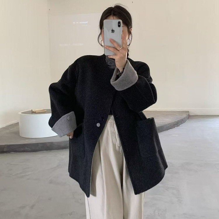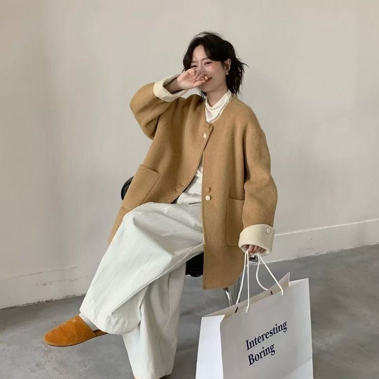 高级感双面羊绒大衣女秋冬新款高级感圆领包包中长款羊毛呢外套女
