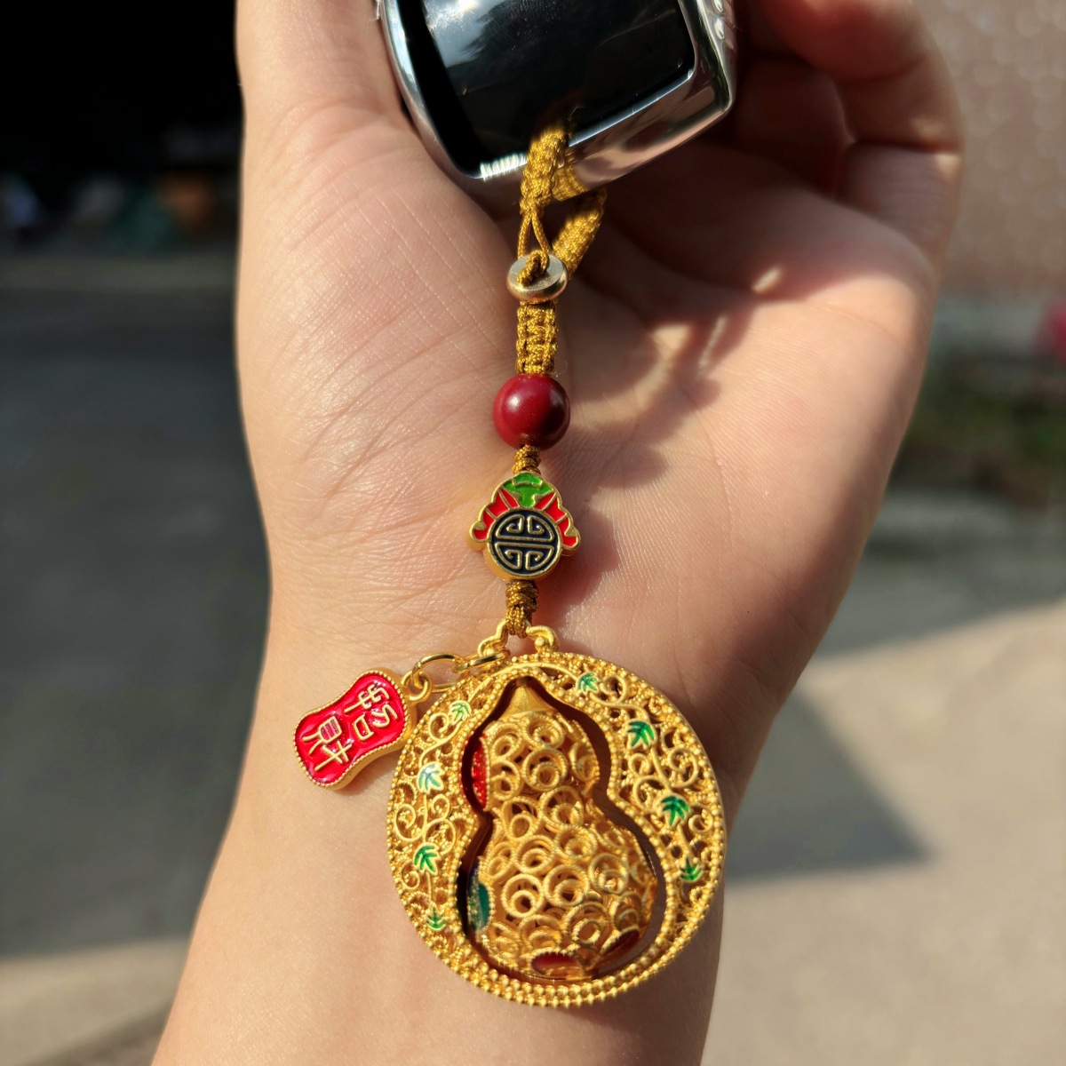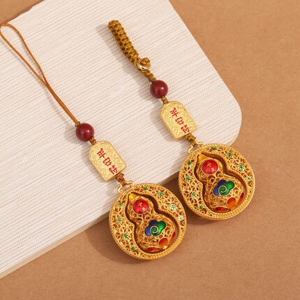 情侣款创意沙金平安葫芦钥匙扣汽车钥匙挂饰男女手机链福禄礼品