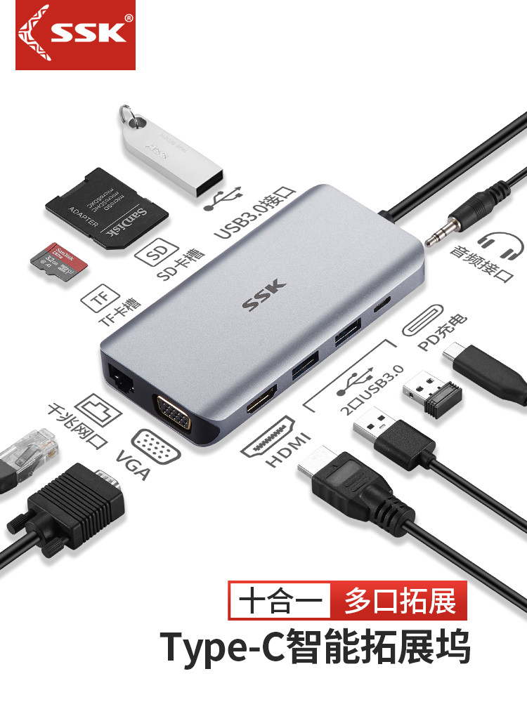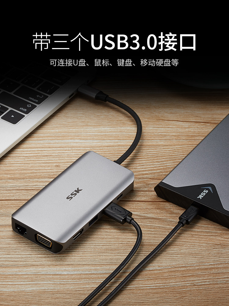 ssk飚王typec扩展坞usb接口拓展macbookpro苹果笔记本电脑ipadpro