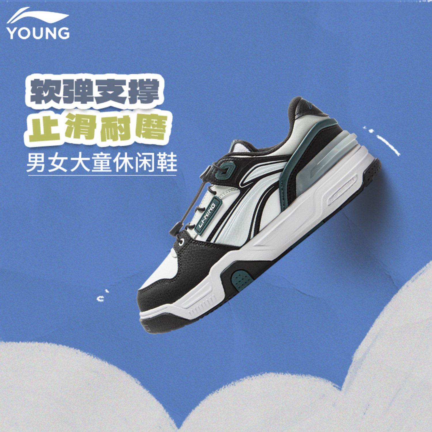 李宁官方旗舰正品儿童休闲鞋男女大童2025新款支撑稳定运动板鞋子