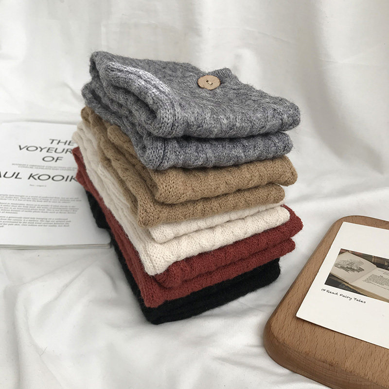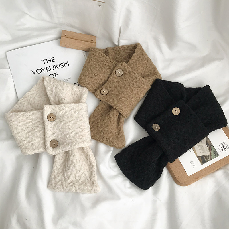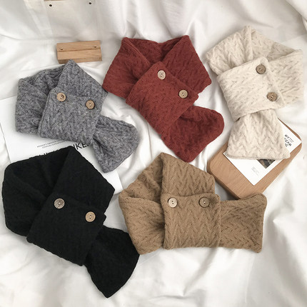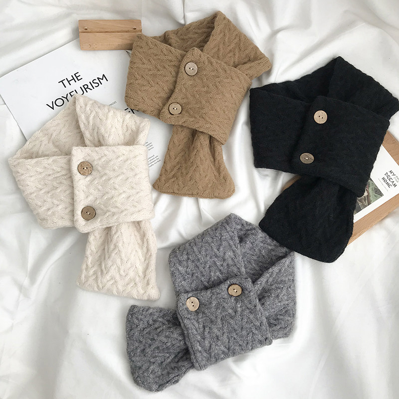 围巾女冬季 百搭纯色ins风简约纯色针织纽扣百搭防寒情侣男小围脖
