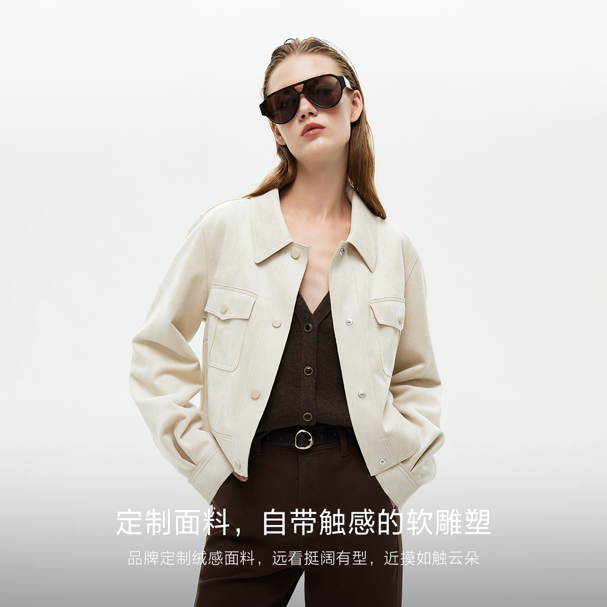 ONLY2025秋季新款翻领正肩软雕塑通勤风夹克风衣短款开衫外套女