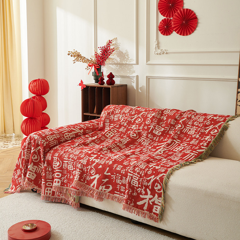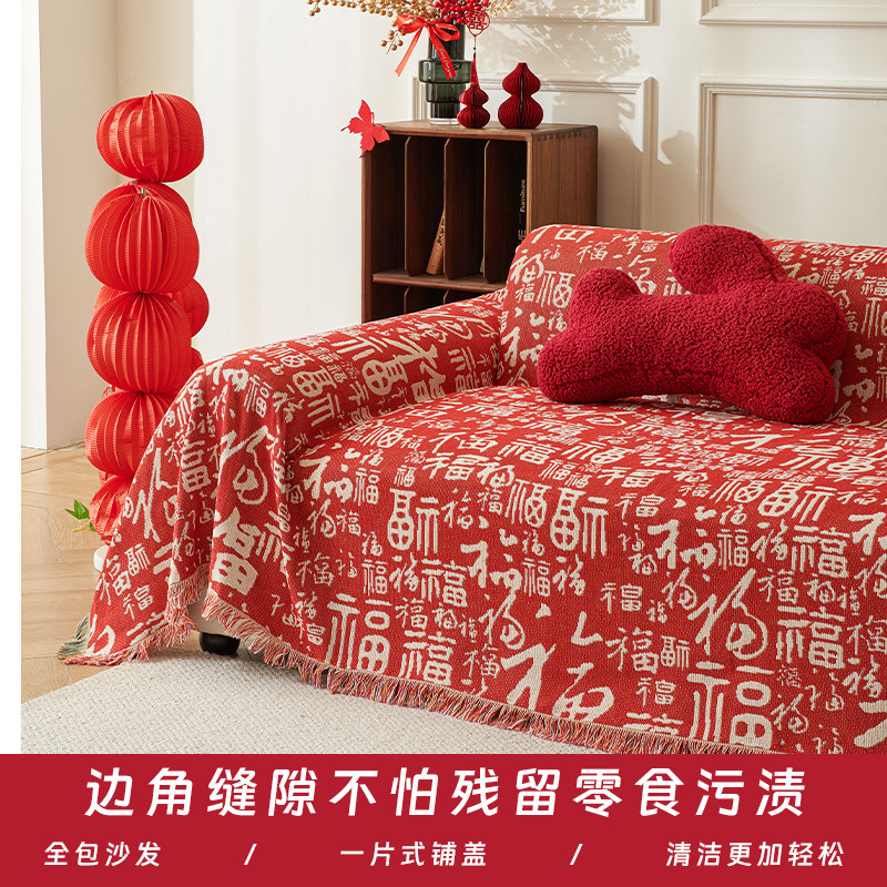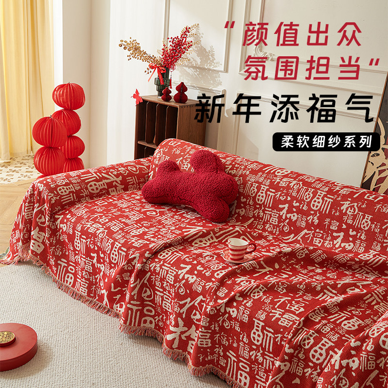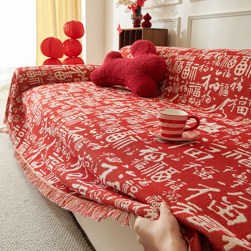 喜庆中国风红色百福沙发巾沙发盖布全盖毯四季通用防滑沙发套罩