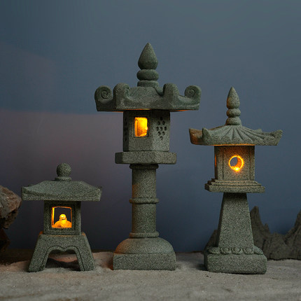 石灯笼小摆件桌面装饰小石亭子中式观景石灯微景观鱼缸造景亭子