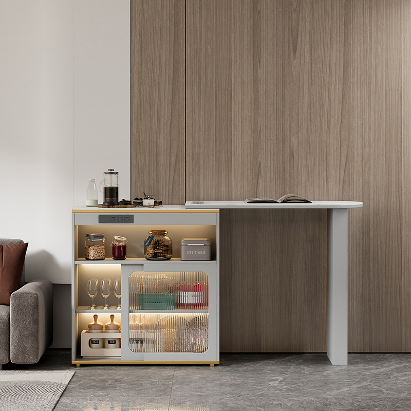 岩板吧台隔断一体伸缩可移动餐桌小户I型家用阳台多功能储物柜桌