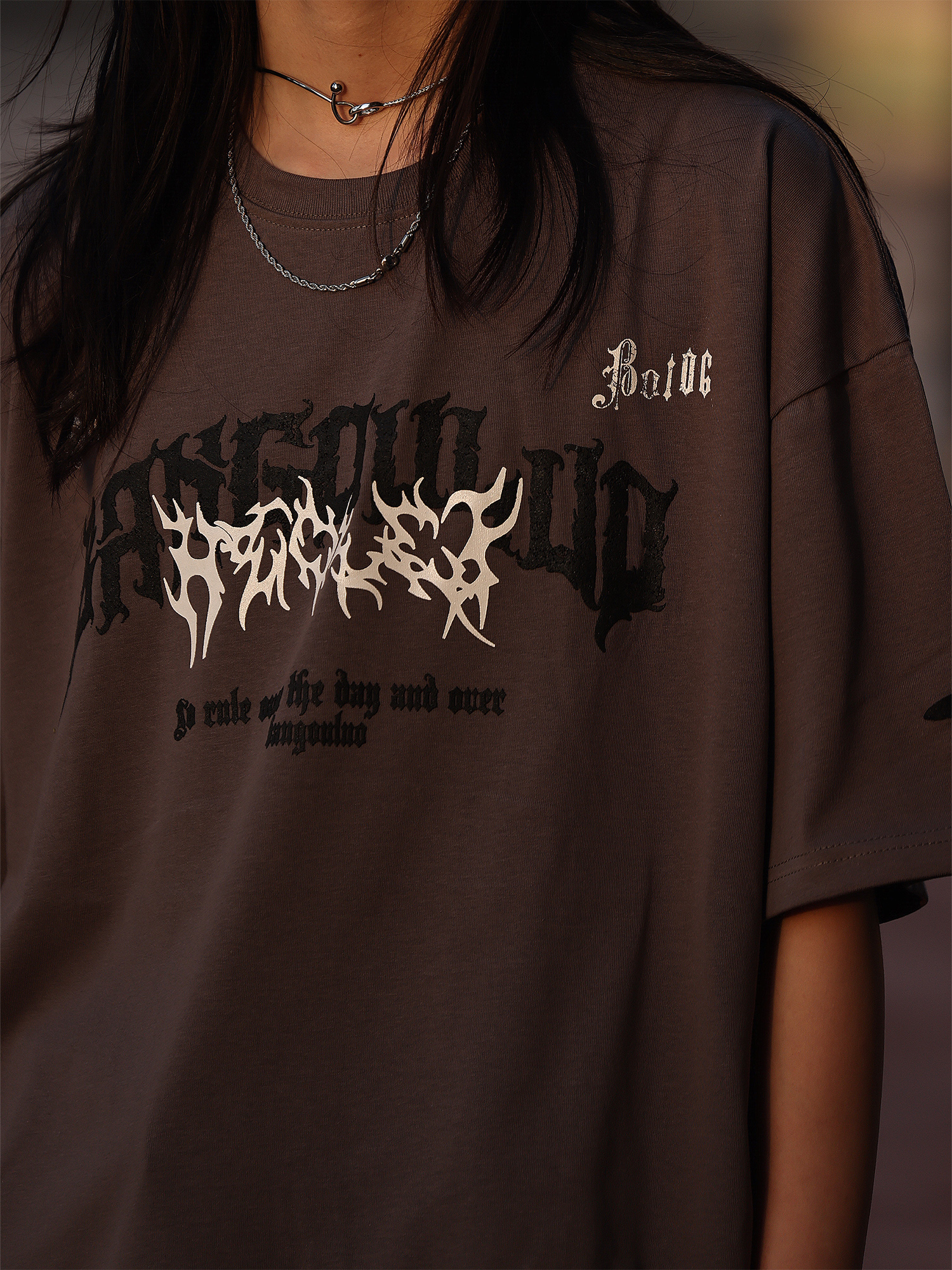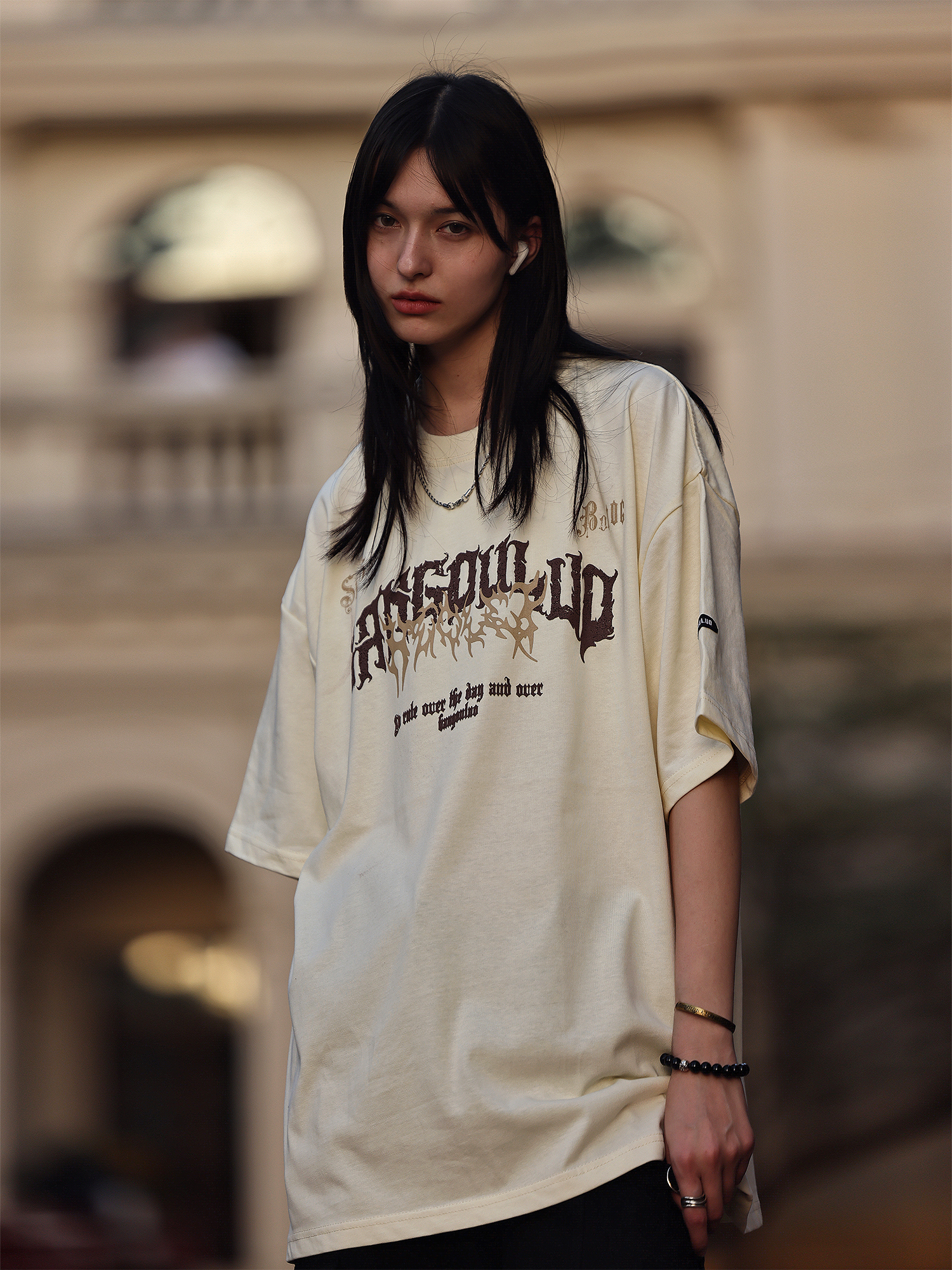 Nobodyknows夏季美式哥特字母印花潮牌短袖男女宽松休闲T恤半袖