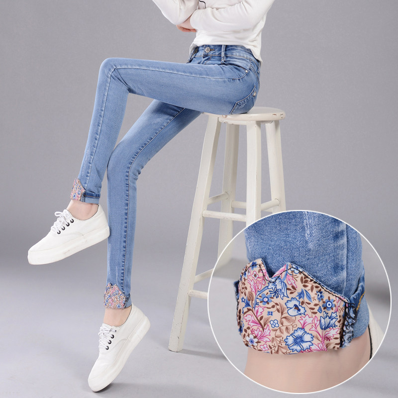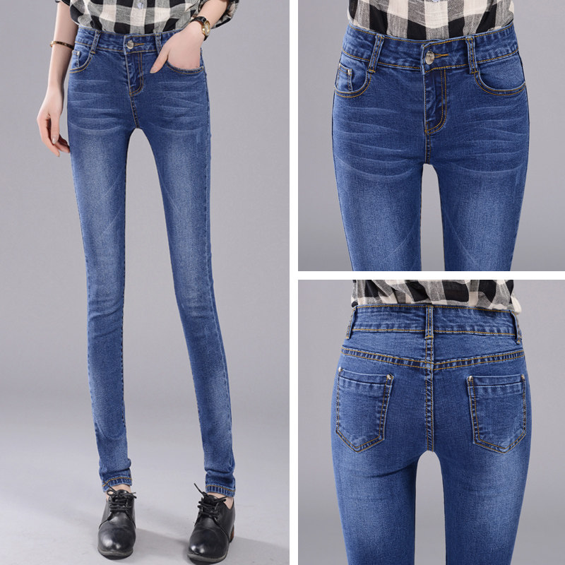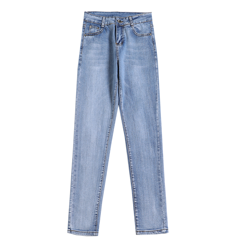 2025春秋新款修身百搭浅色牛仔裤女薄款中腰弹力紧身显瘦小脚长裤