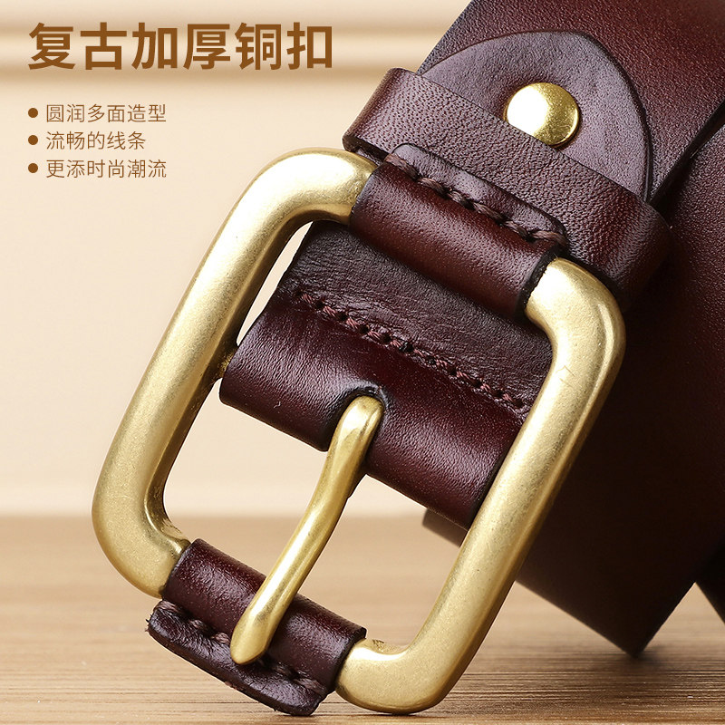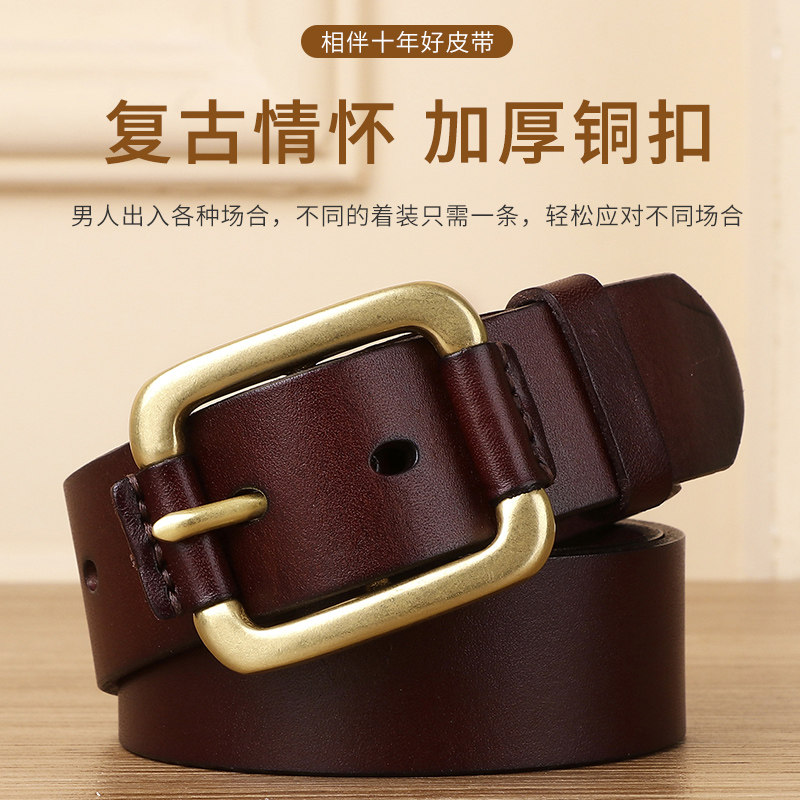 【头层纯牛皮】皮带纯铜带中年潮