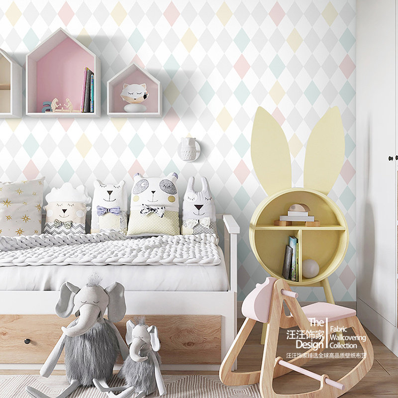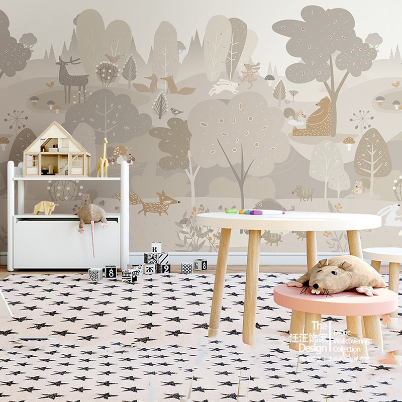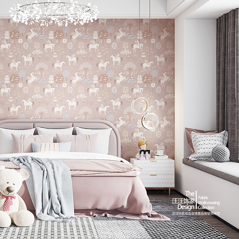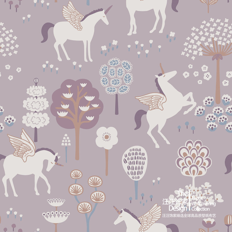 现代简约北欧 儿童房环保无缝墙布 卡通植物动物 独角兽壁布