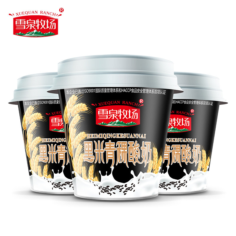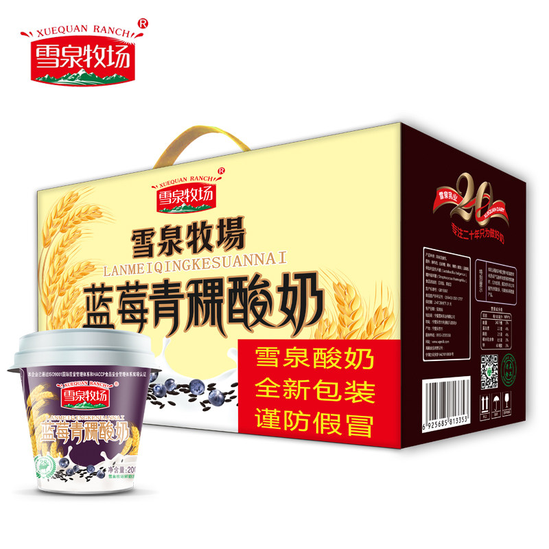 雪泉牧场黑米蓝莓青稞酸奶200g*12杯*1箱 没有纸箱介意勿拍泡沫箱