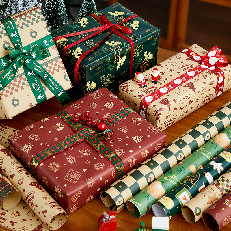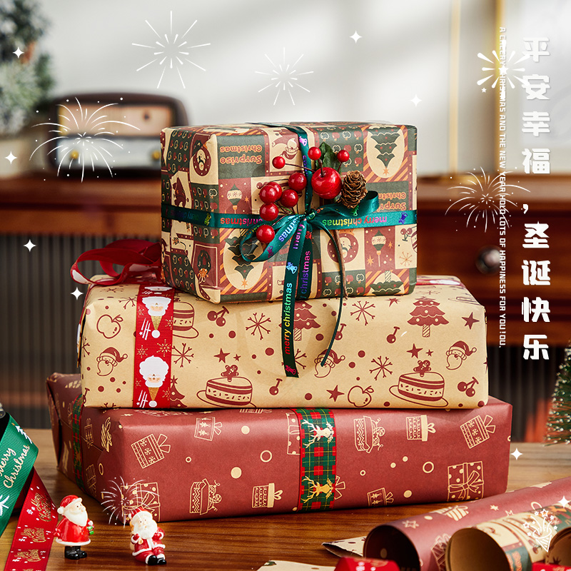 圣诞节高级感礼物包装纸卡通牛皮纸糖果零食礼盒包装材料打包纸