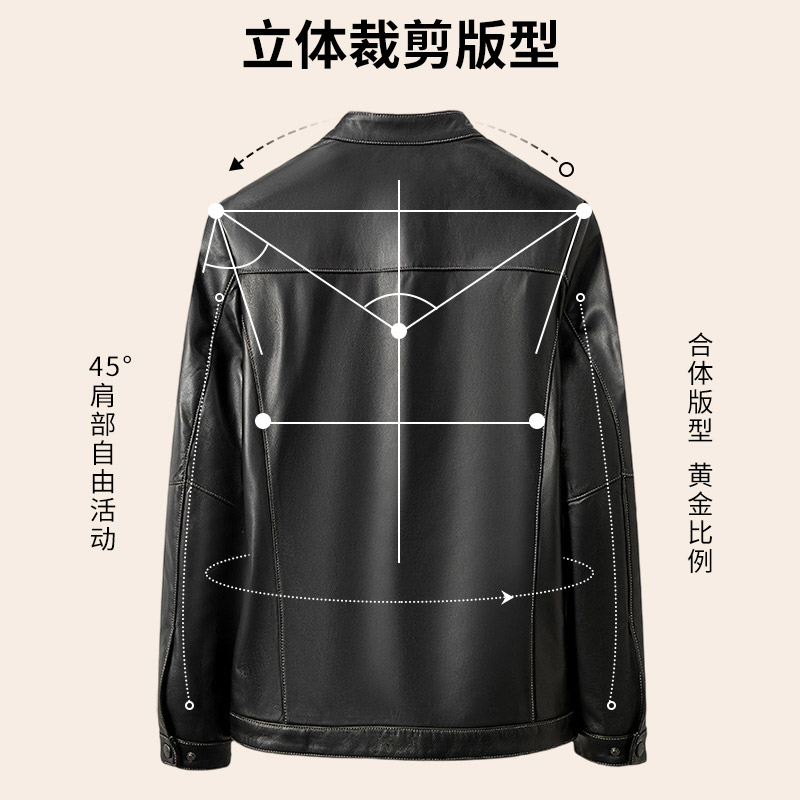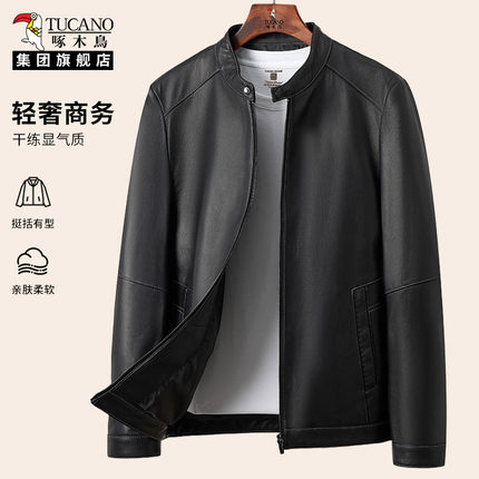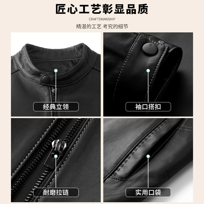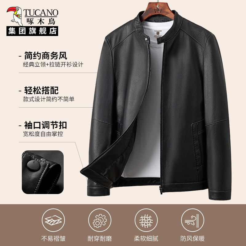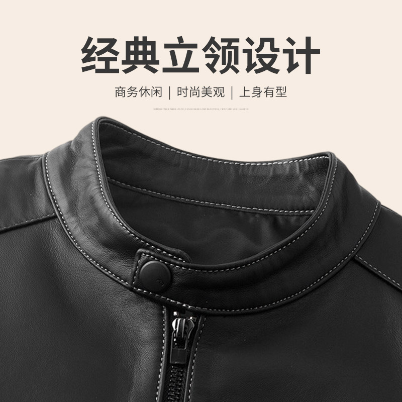 啄木鸟绵羊皮皮衣男士圆领外套秋季新款时尚休闲潮流真皮机车夹克