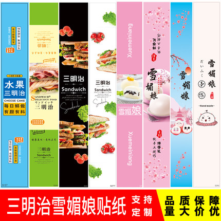 三明治贴纸长条不干胶烘焙雪媚娘贴纸包装盒贴纸标签封口贴贴定制