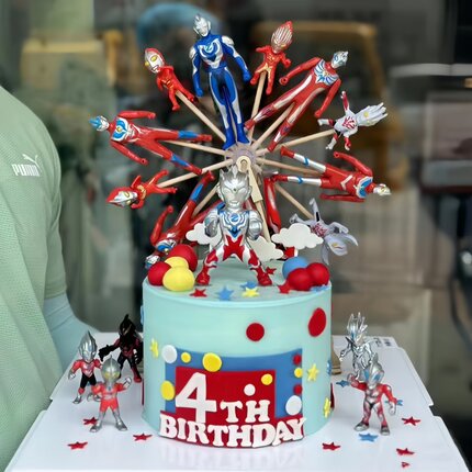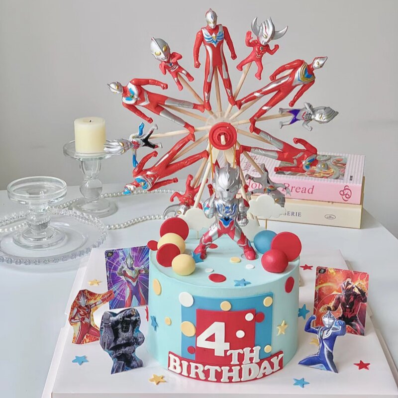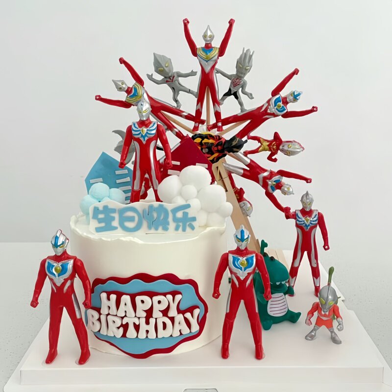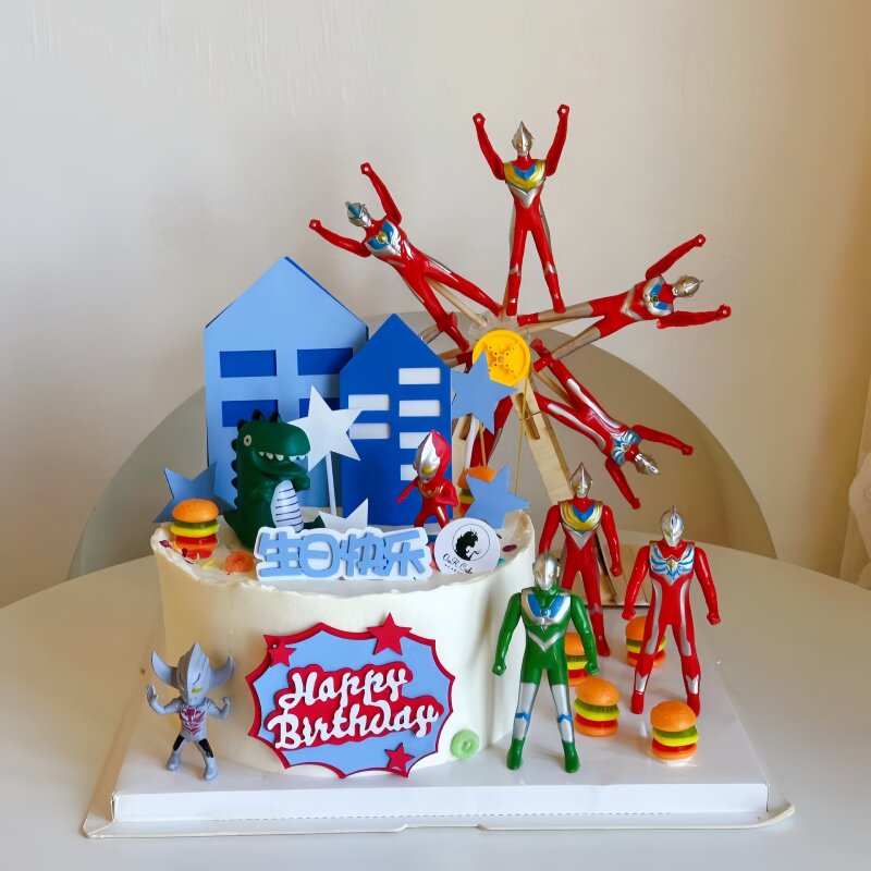 网红超人风车蛋糕装饰电动摩天轮旋转蛋糕男孩生日蛋糕装饰摆件