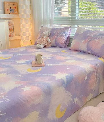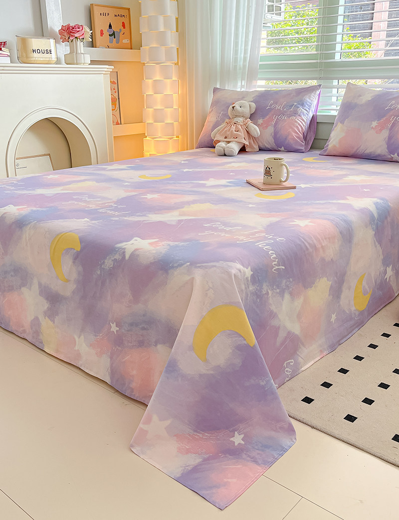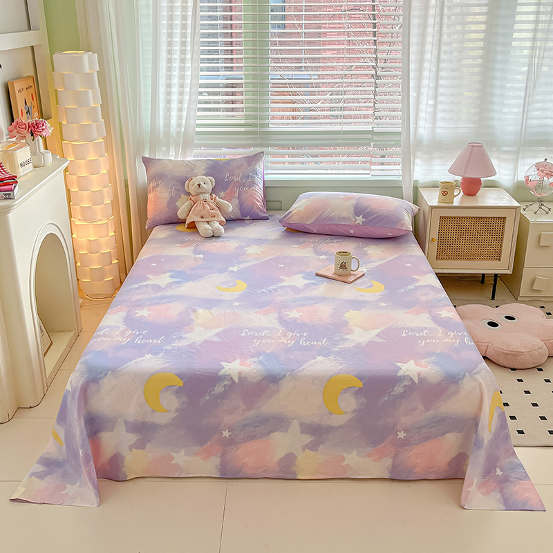 北欧纯棉床单单件简约星月1.8米宿舍家用100全棉单双人被单三件套