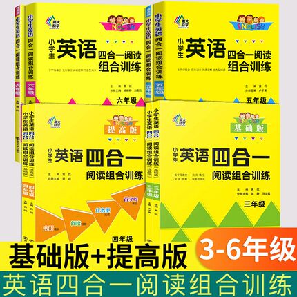 南大教辅小学生英语四合一阅读组合训练三年级四年级五年级六年级上册下册英语阅读理解专项训练复习辅导教材书同步阅读训练真题卷