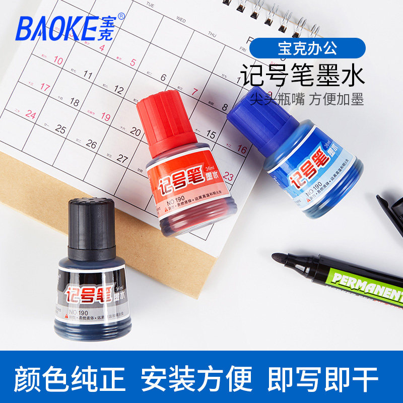 宝克记号笔墨水NO190仓库大头笔油性马克笔补充液黑红蓝办公用品