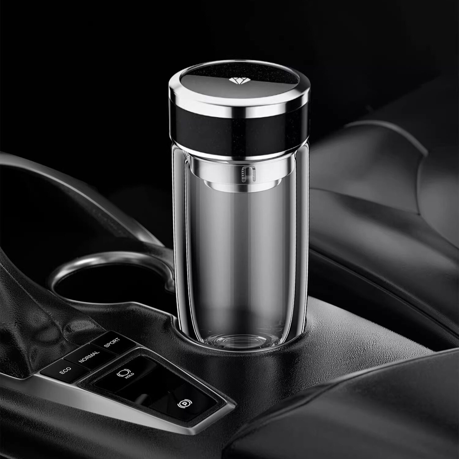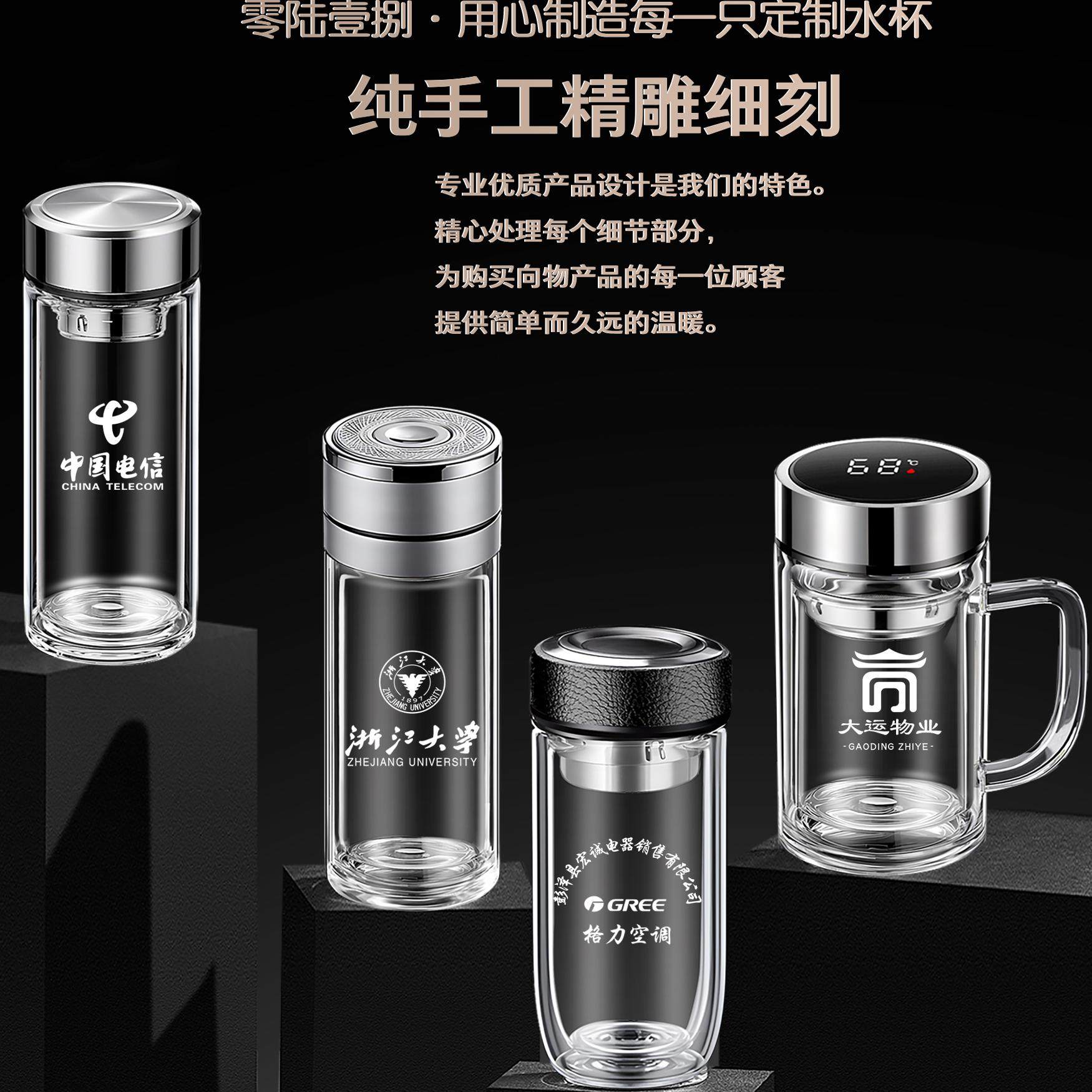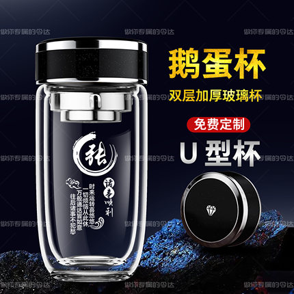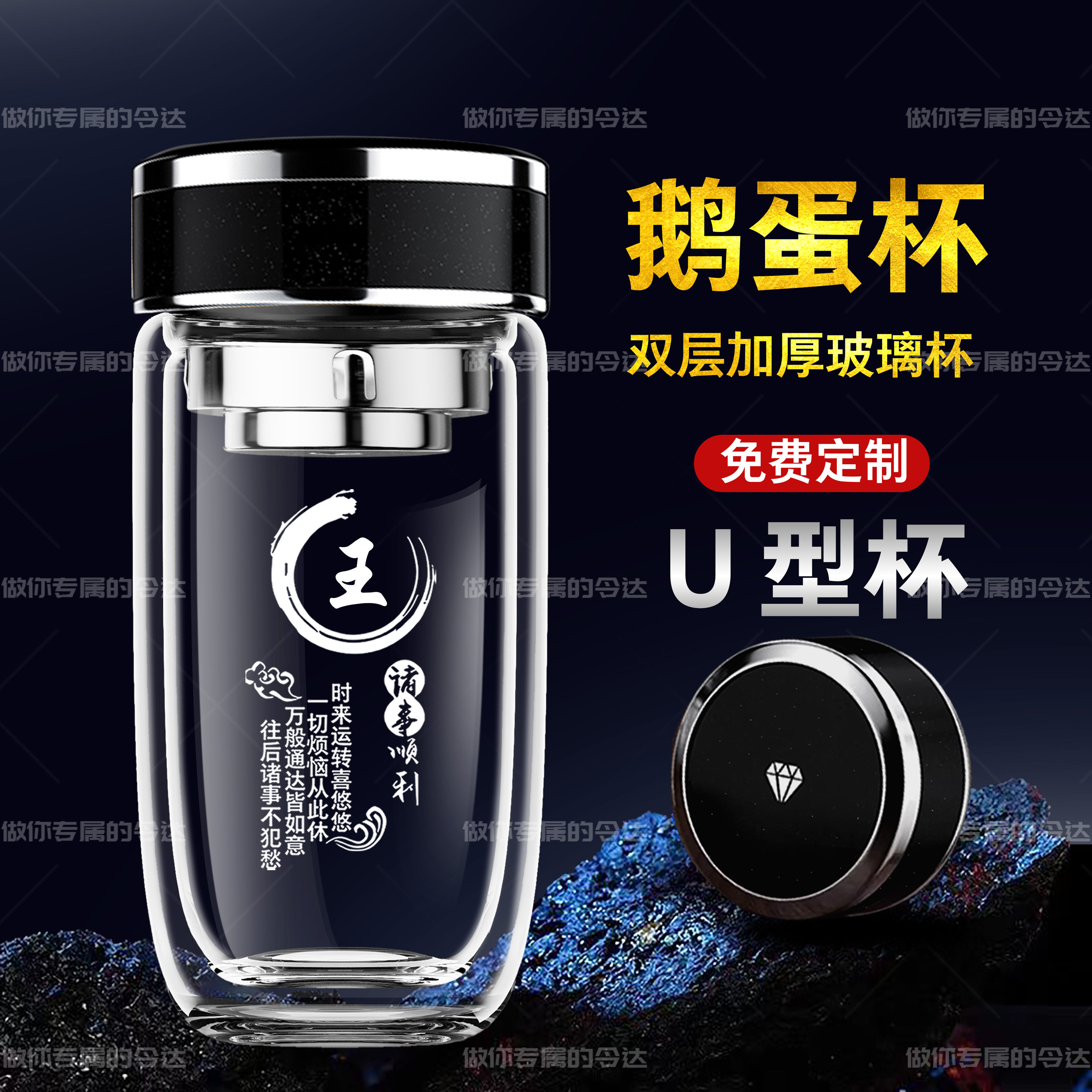 男士双层玻璃杯定制姓氏图案企业logo茶水分离鹅蛋杯办公商务车载