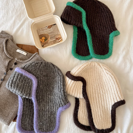25年秋冬新款加厚护耳帽女韩国东大门代购复古休闲拼色毛线防寒帽