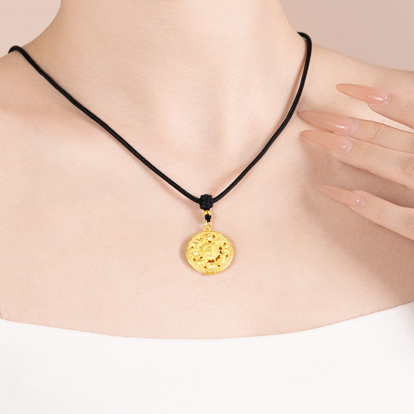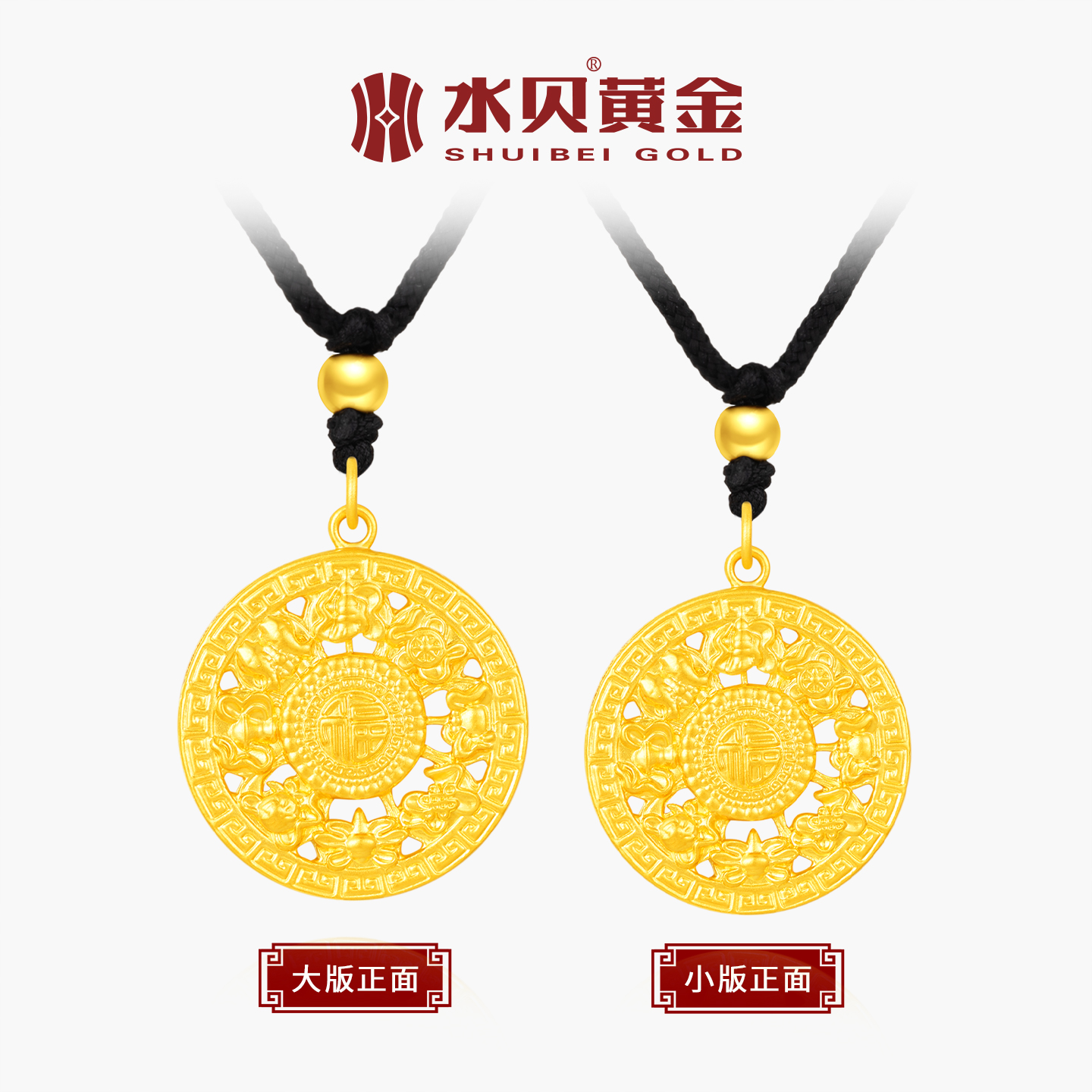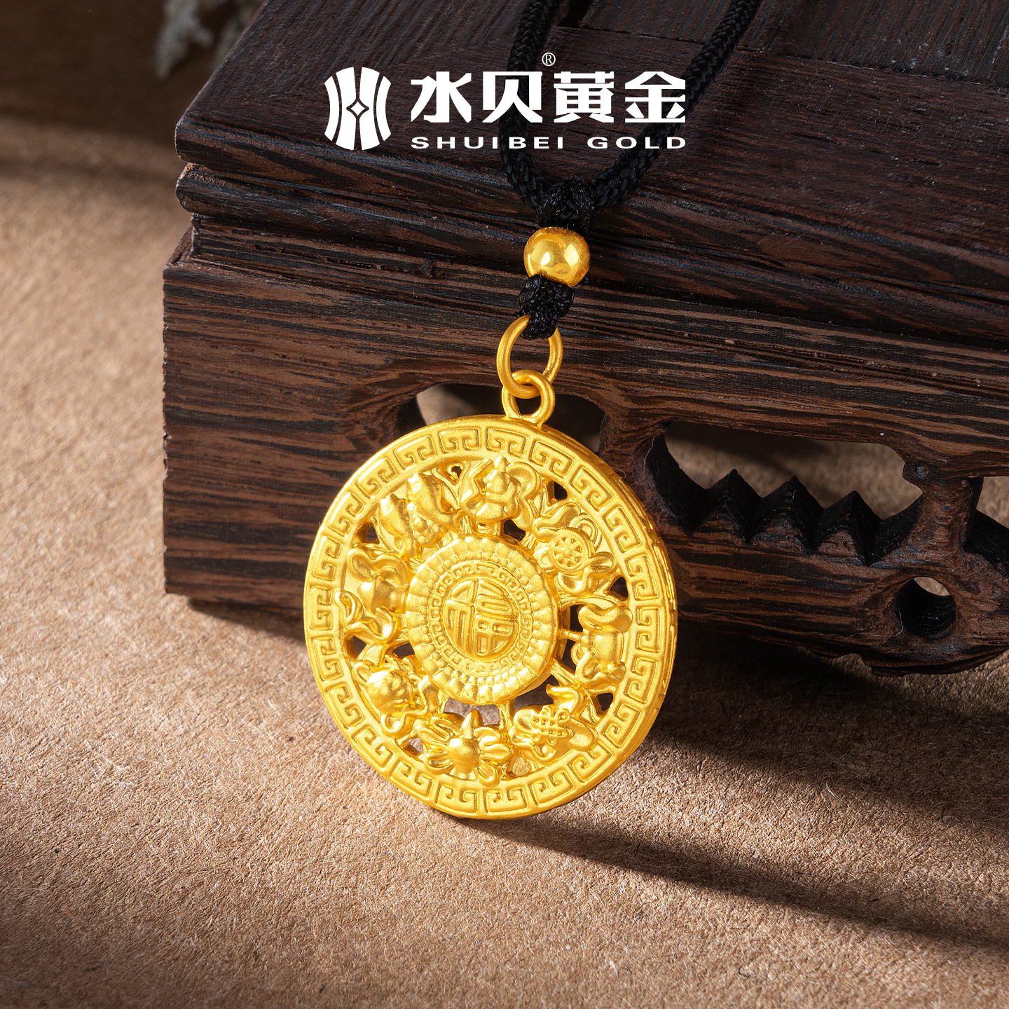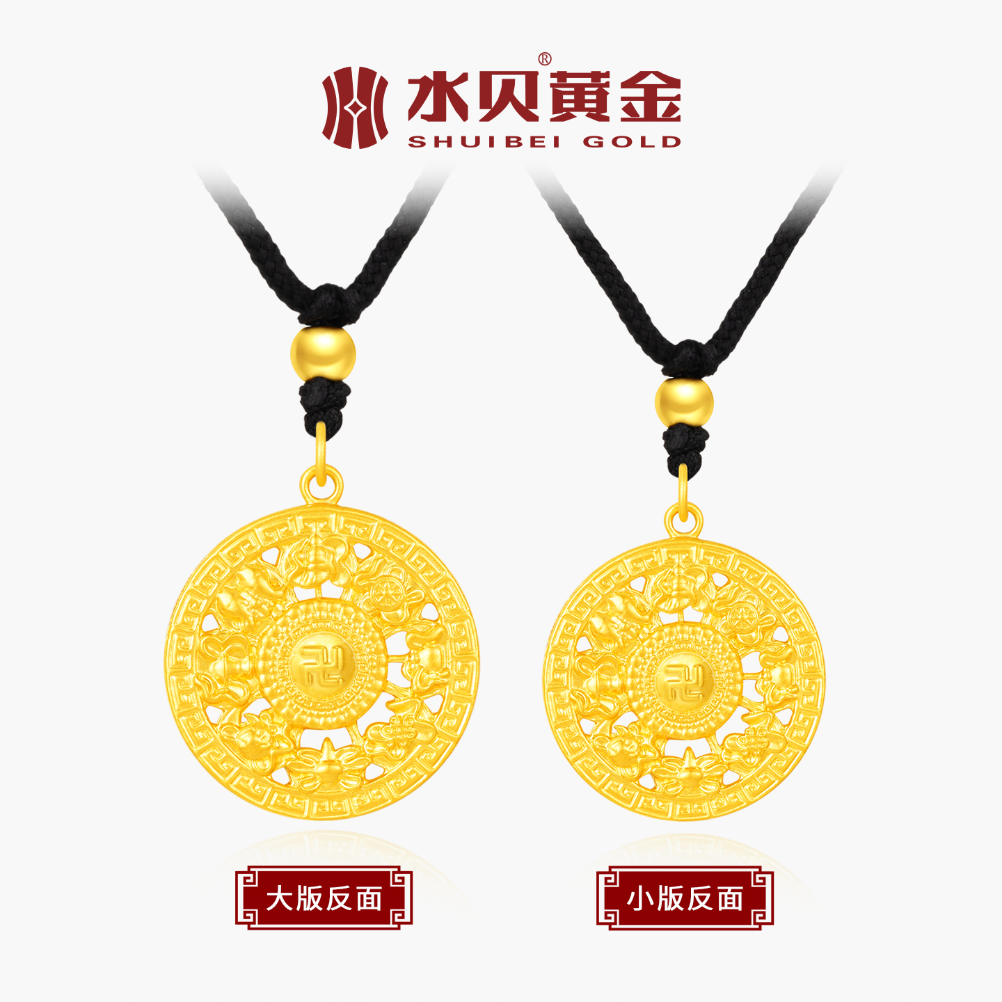 水贝黄金官方旗舰店足金999八宝罗盘吊坠编颈绳七夕礼物送男友