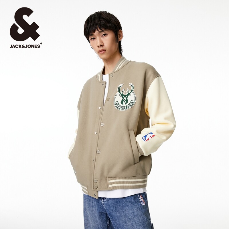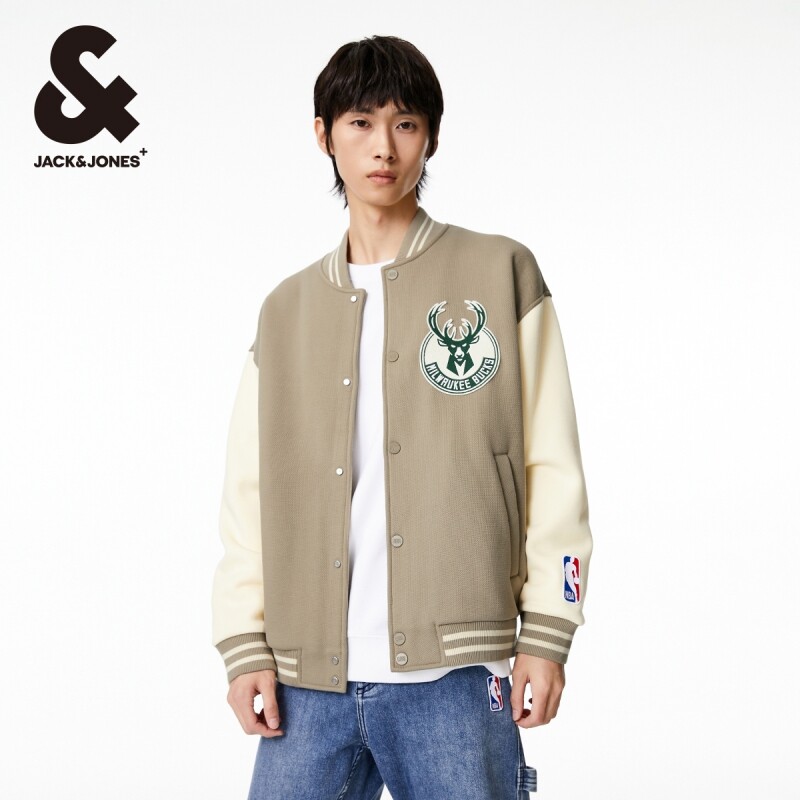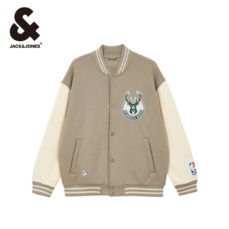 杰克琼斯男装夹克 外套春季NBA联名雄鹿队运动棒球领宽松男装