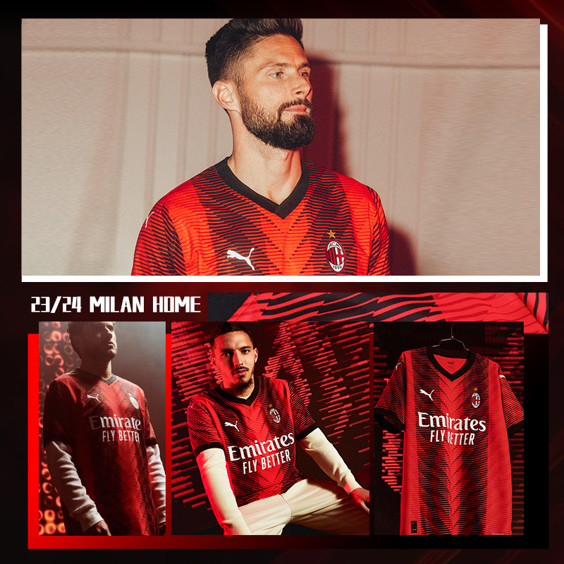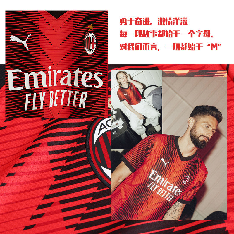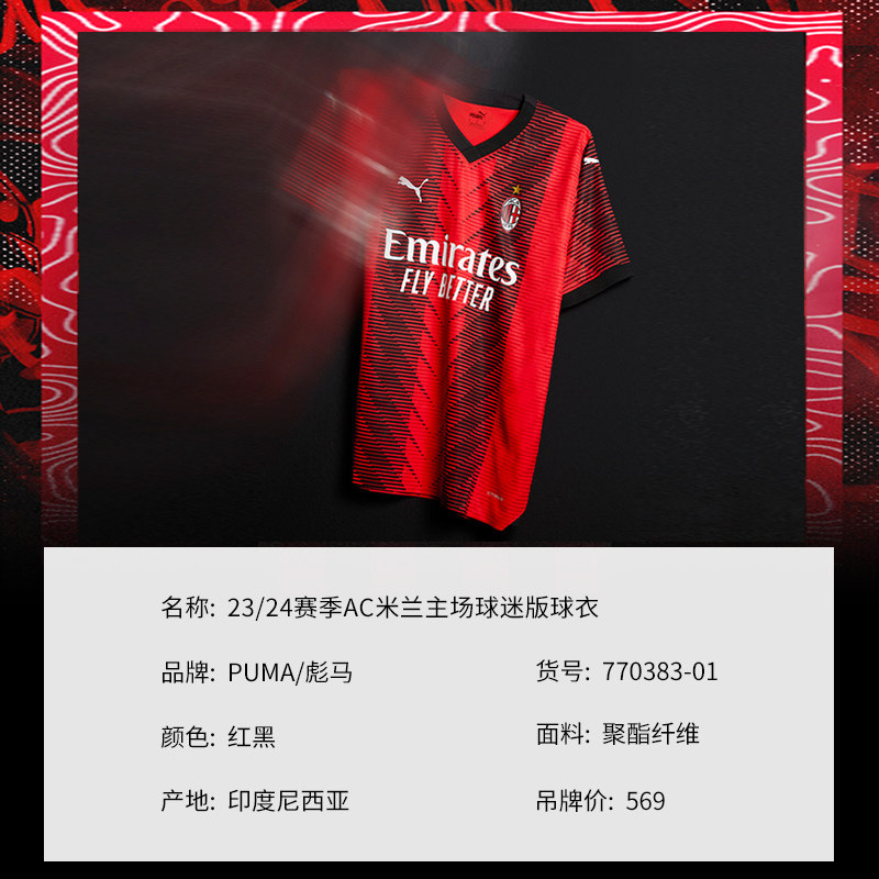 彪马球衣AC米兰23-24新赛季主场球衣PUMA意甲联赛比赛球服球迷版