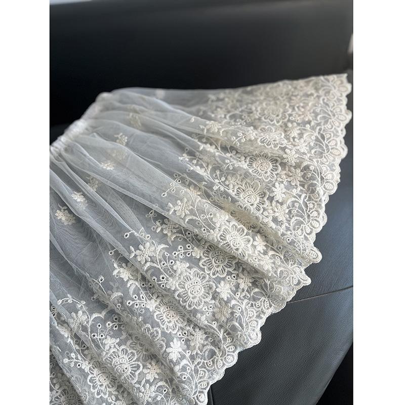 日韩森系少女搭配精美刺绣花朵蕾丝叠穿屁帘四季百搭层次感半身裙