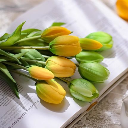 快速发货仿真花郁金香p插花高端假花餐桌布置摆件干花客厅花束复