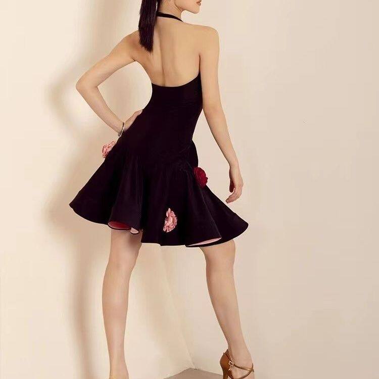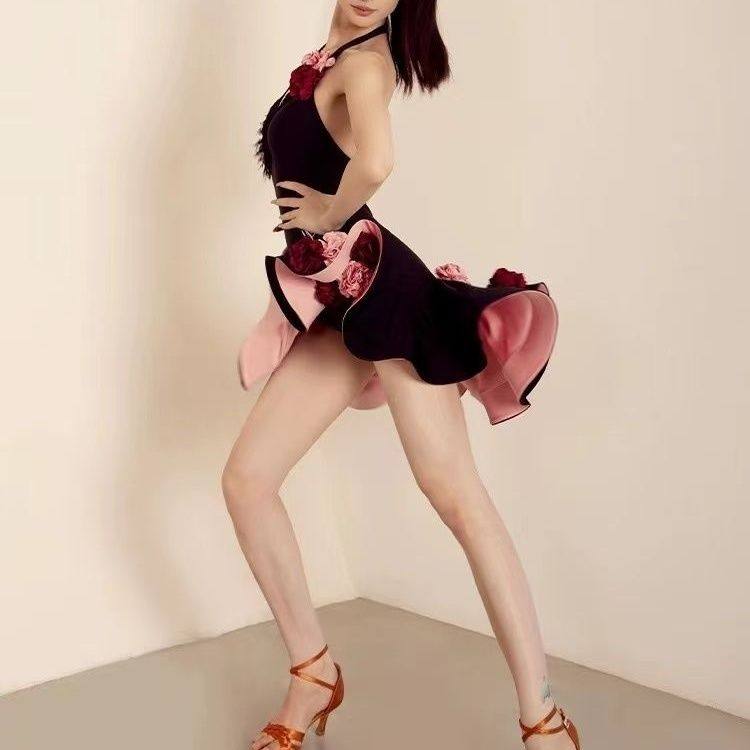 YES拉丁舞裙舞服高级感套装夏季新款女成人舞蹈服挂脖连衣裙YD322