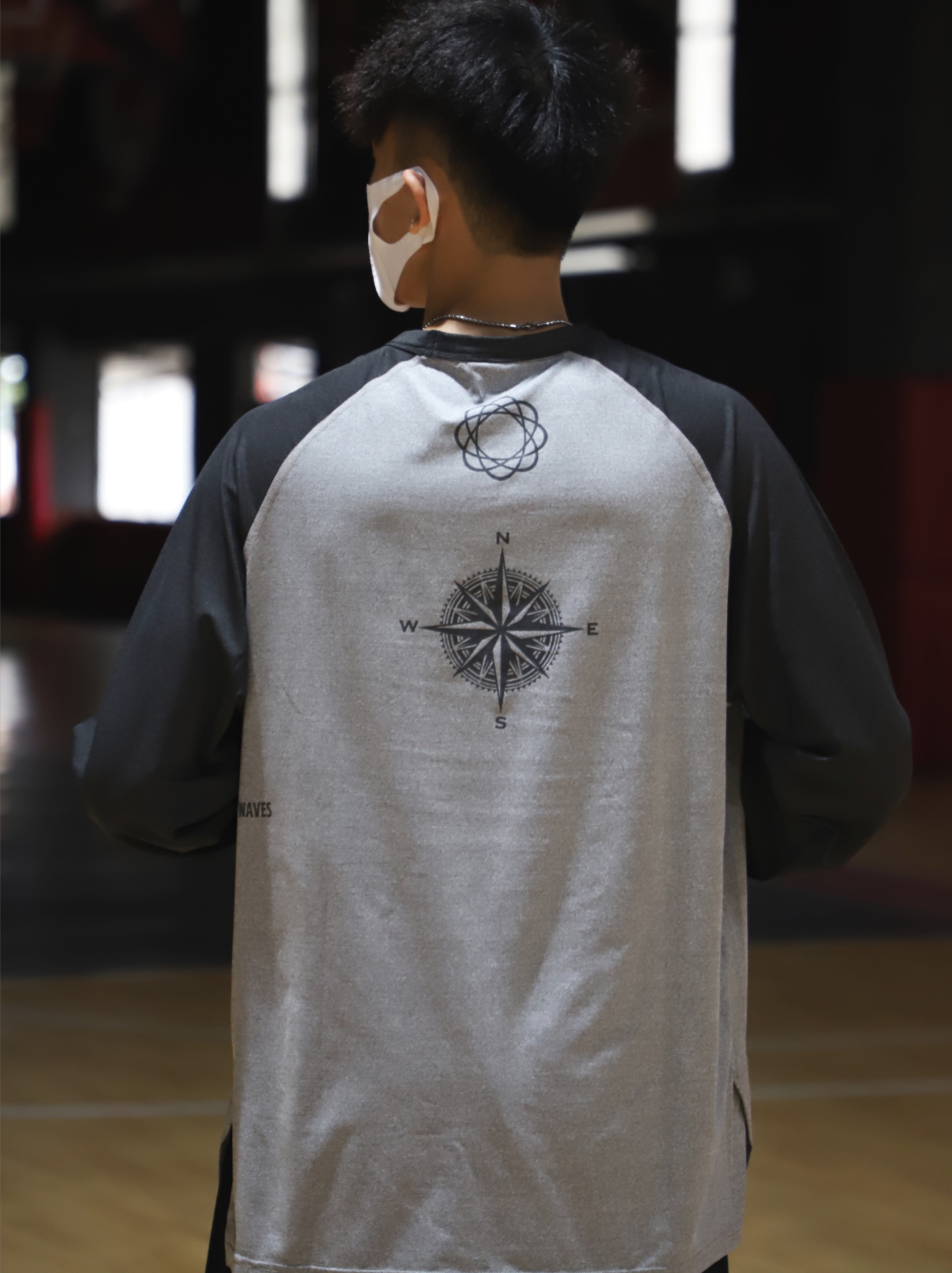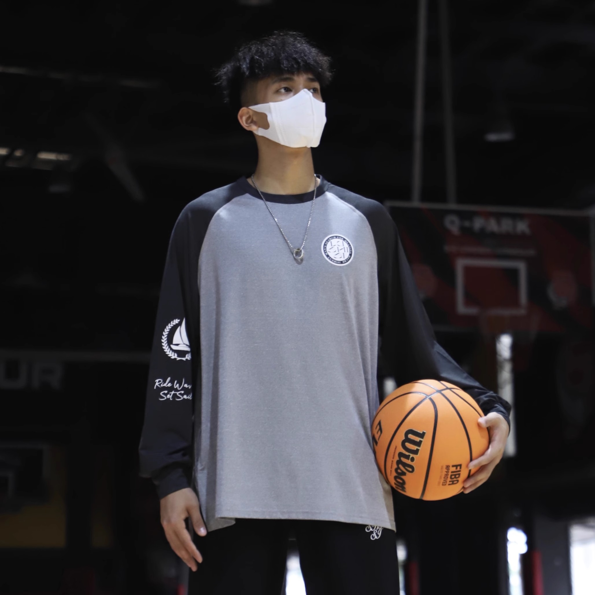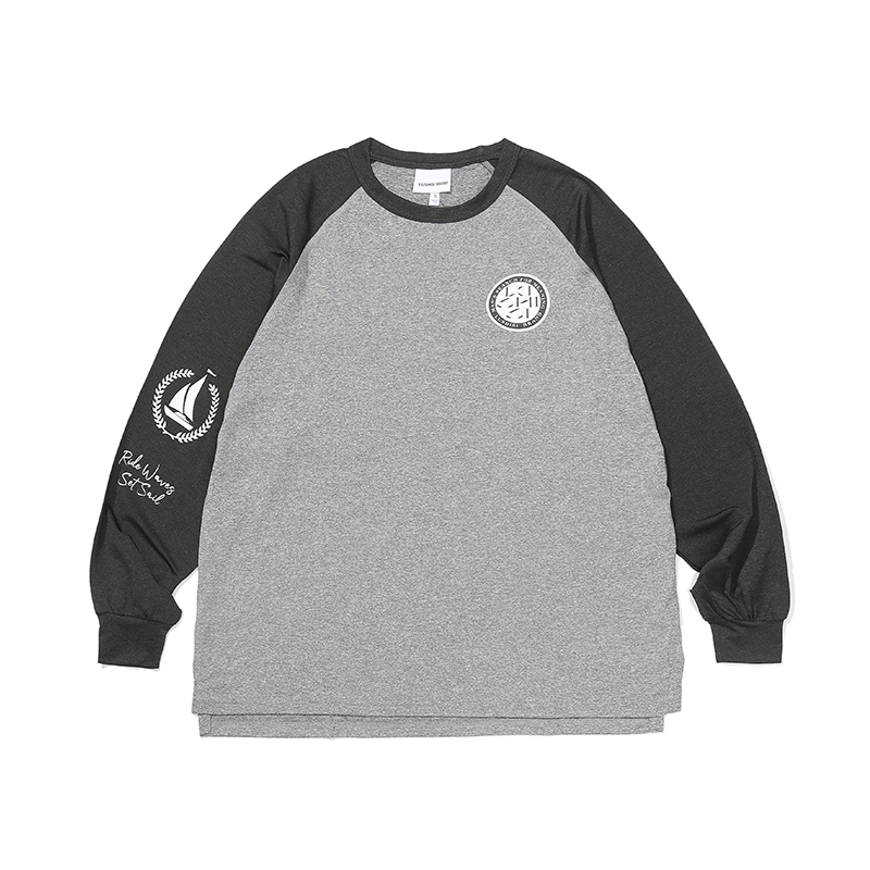 LUSHISI长袖投篮服灰色航海插肩休闲长袖篮球T恤运动速干排汗面料