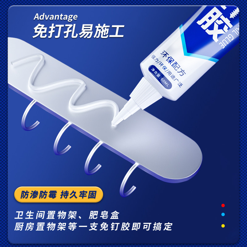 免钉胶防霉免打孔强力胶高粘度免钉胶贴墙面瓷砖专用强力万能粘墙面金属墙壁镜子踢脚线卫生间置物架免钉胶水