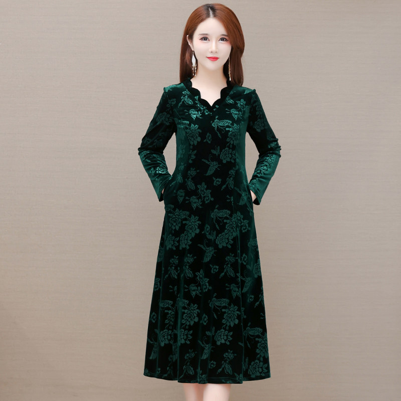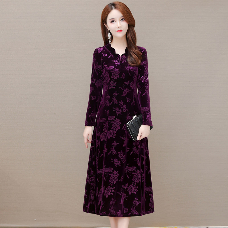妈妈连衣裙阔太太秋装时尚中长款中老年女装金丝绒中年春秋女裙子
