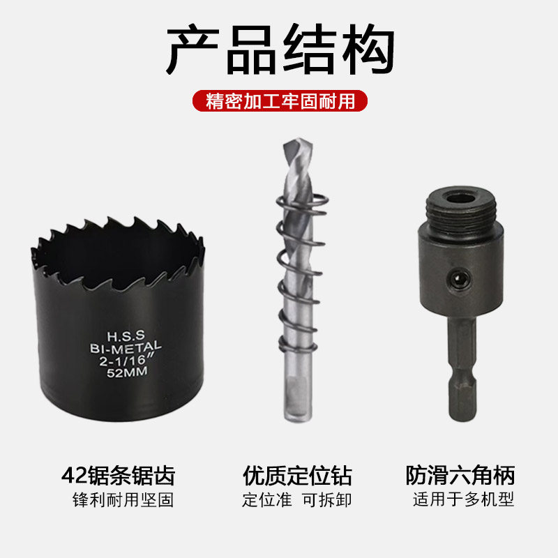六角柄木工铝合金石膏板管道开孔铁皮打孔钻头6.35mm电起子机专用