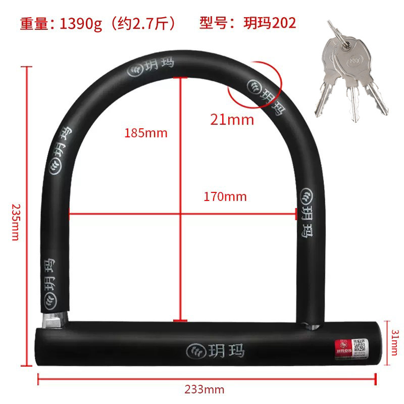 玥玛锁摩托车锁U型锁电动车防盗三轮车防盗锁抗液压剪防撬防钻C级