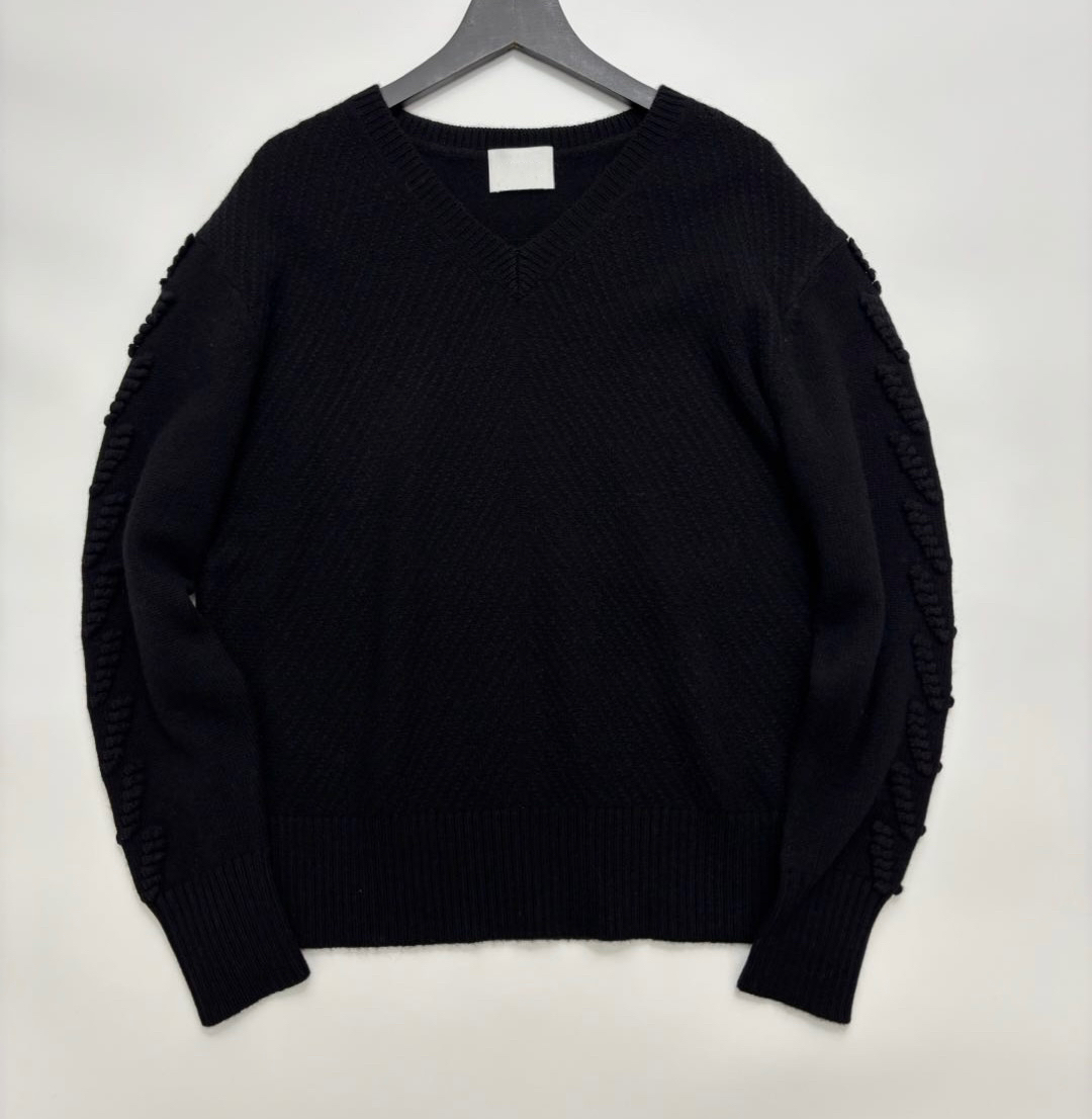25秋冬新款 小众轻奢纹理感V领纯羊绒宽松百搭套头毛衣针织衫女士