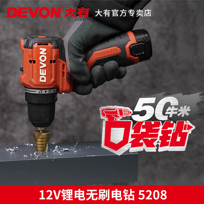 新品大有5209无刷锂电钻50牛米冲击钻电动手电钻家用口袋钻手转