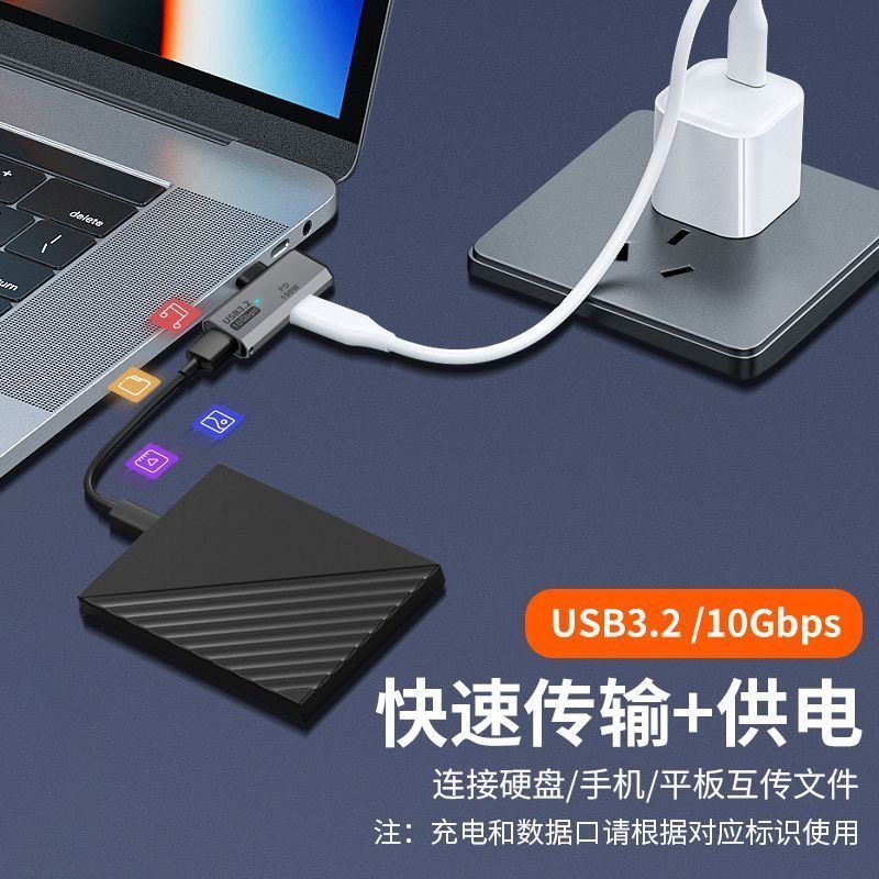 双头Typec一分二C母口转换器OTG笔记本扩展100W充电二合一转接口U盘硬盘USB耳机声卡0tg平板适用苹果华为手机