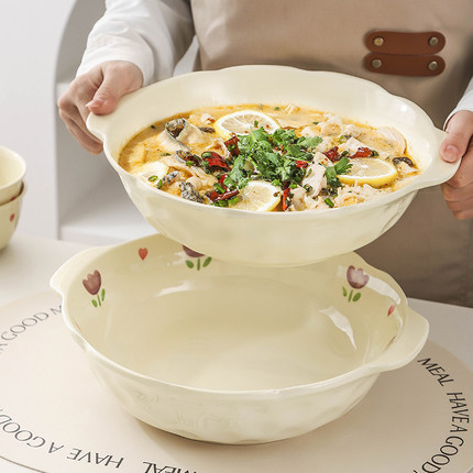 奶油风陶瓷酸菜鱼大盆碗