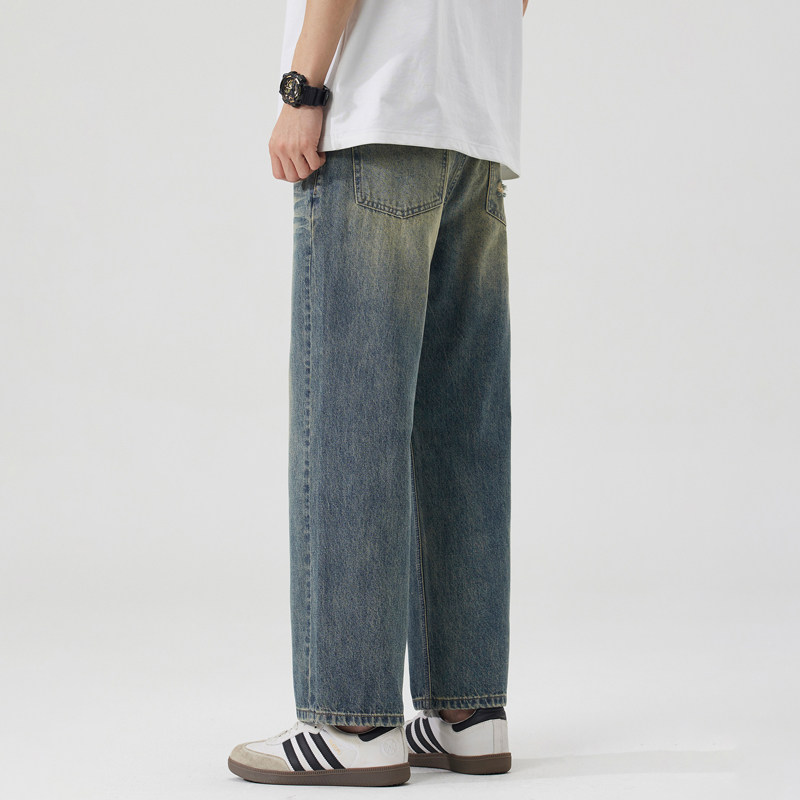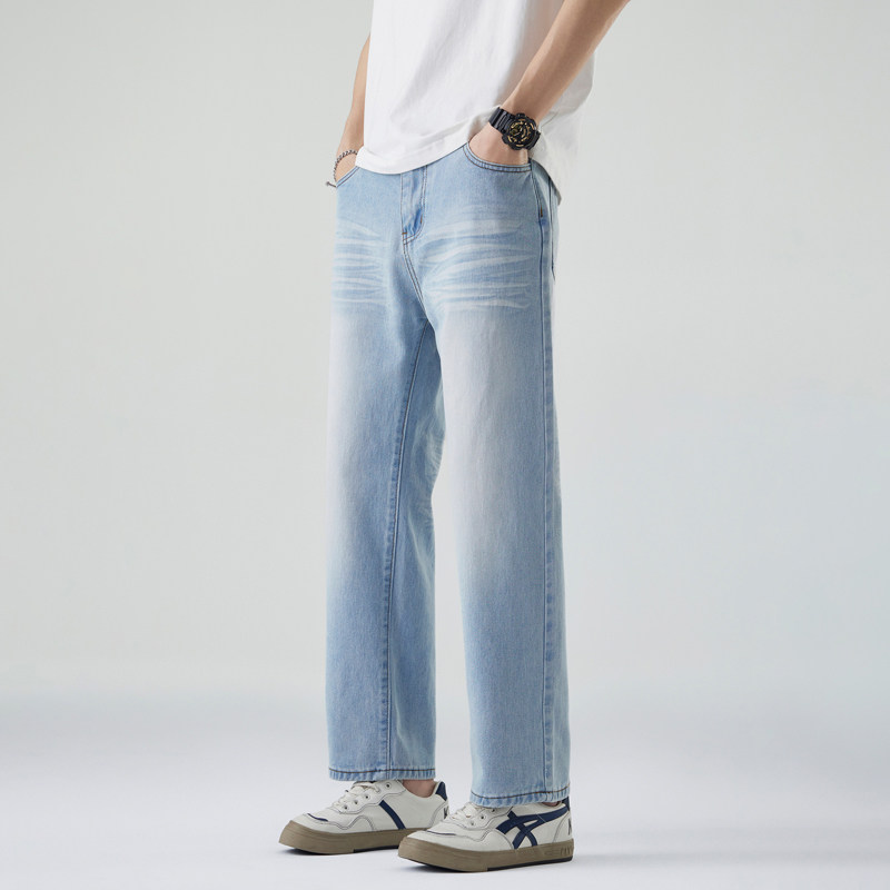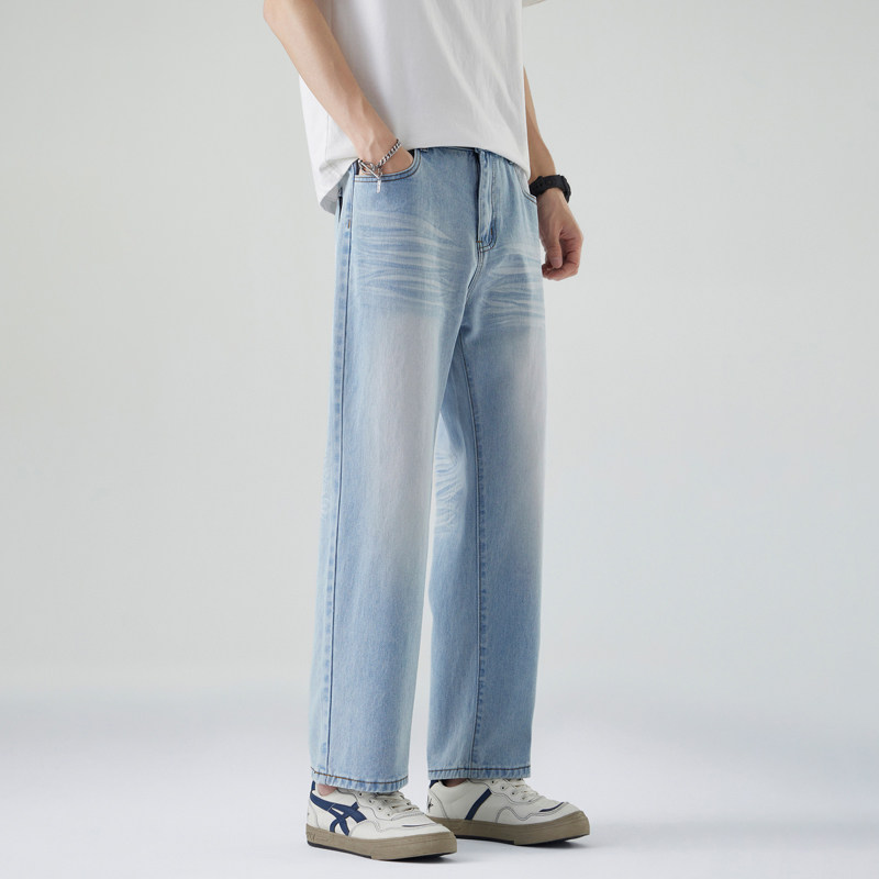 吾一白夏季薄款2025新款男生美式休闲九分牛仔裤男士直筒百搭长裤