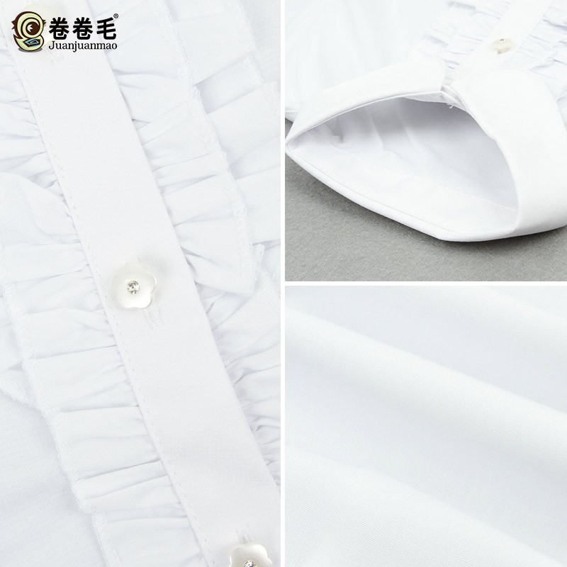 卷卷毛儿童衬衣春秋季新款花边公主女童学院风长袖上衣女大童衬衫
