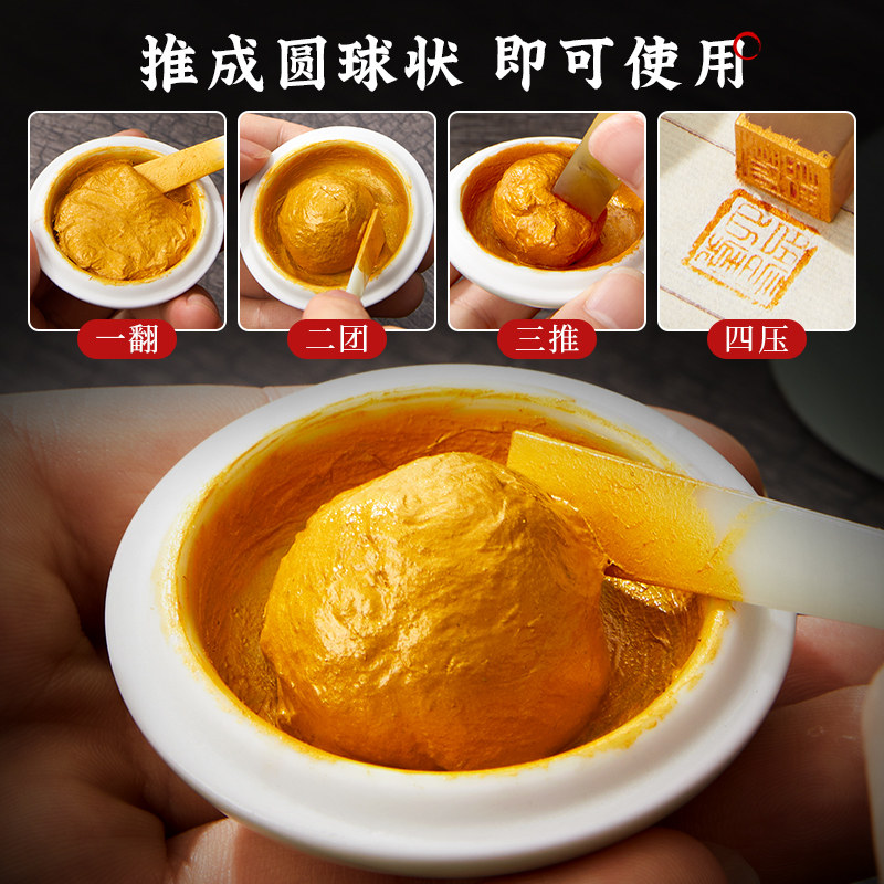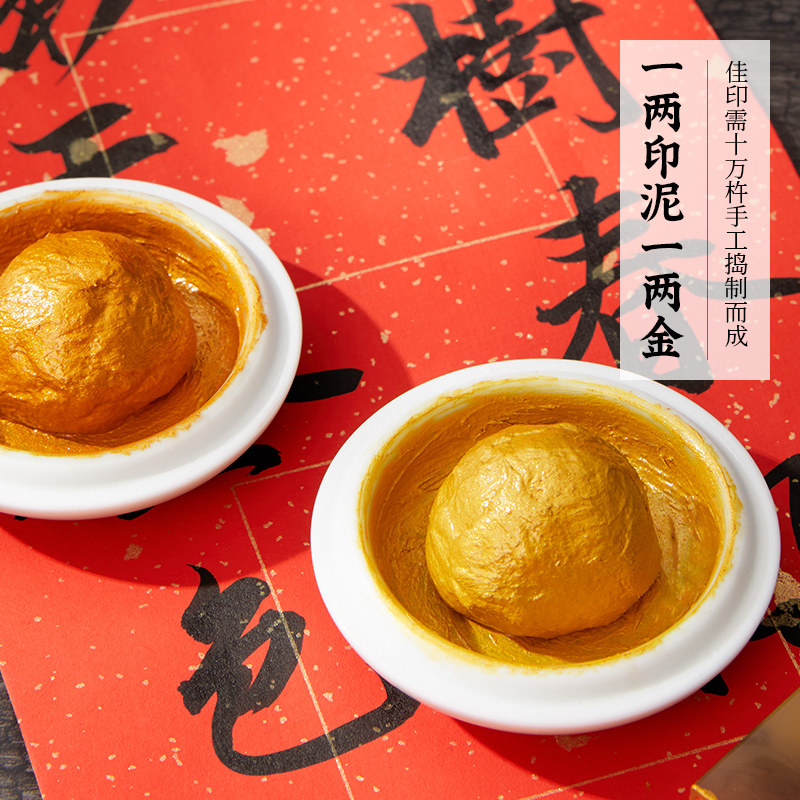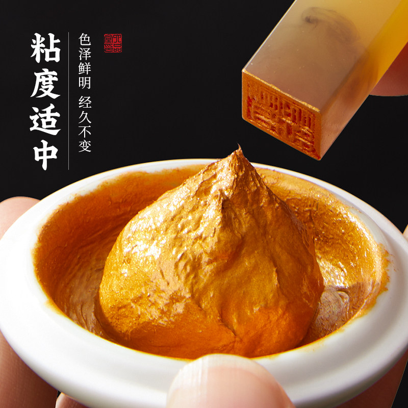 书法金色印泥书画金印泥印章印泥陶瓷印泥盒印泥缸金色印台印油金粉印章泥篆刻彩色印泥国画六品堂掌上碑帖