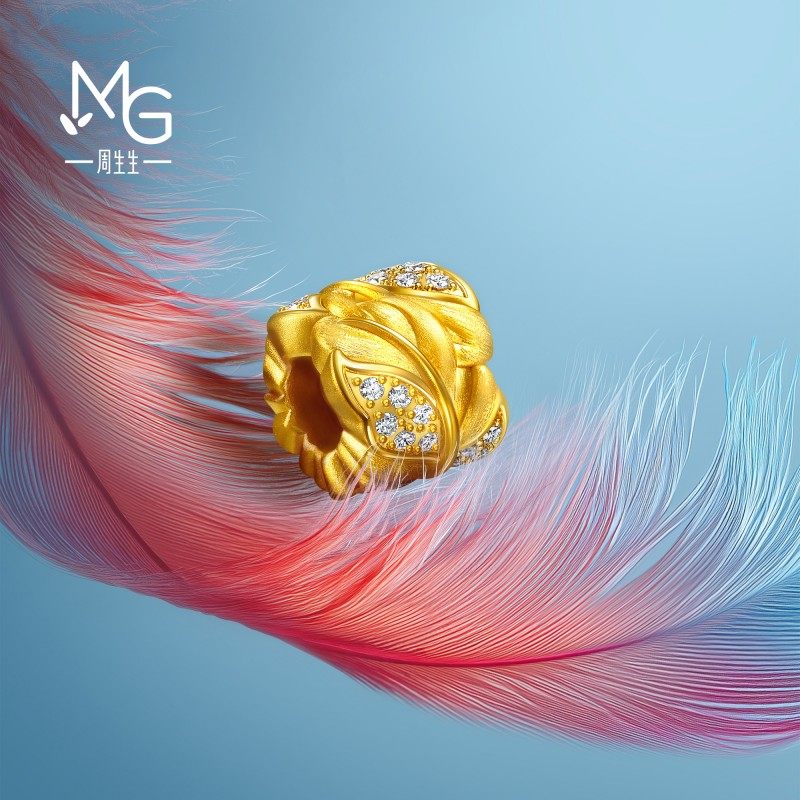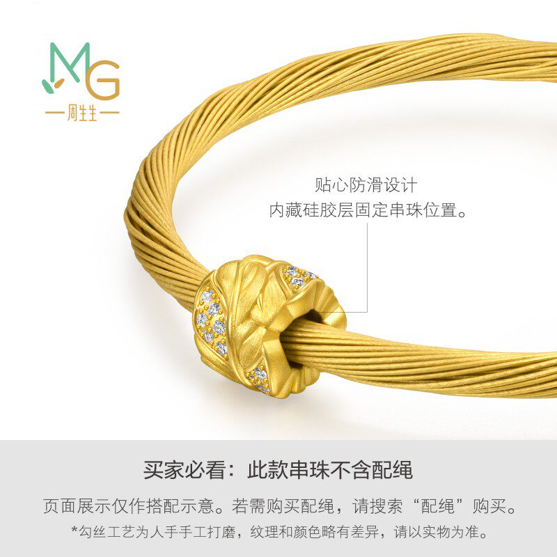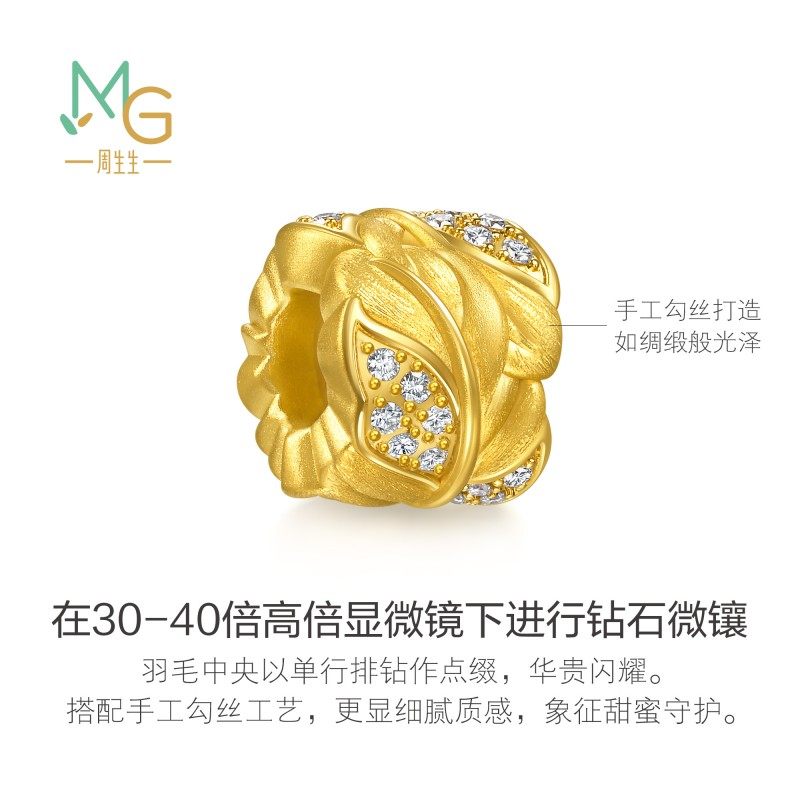 圣诞周生生黄金羽毛转运珠爱情密语足金镶嵌钻石羽爱串珠95807C