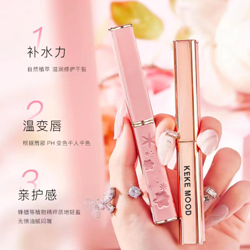 kekemood樱花细管口红持久不沾杯不掉色滋润打底温变色唇膏