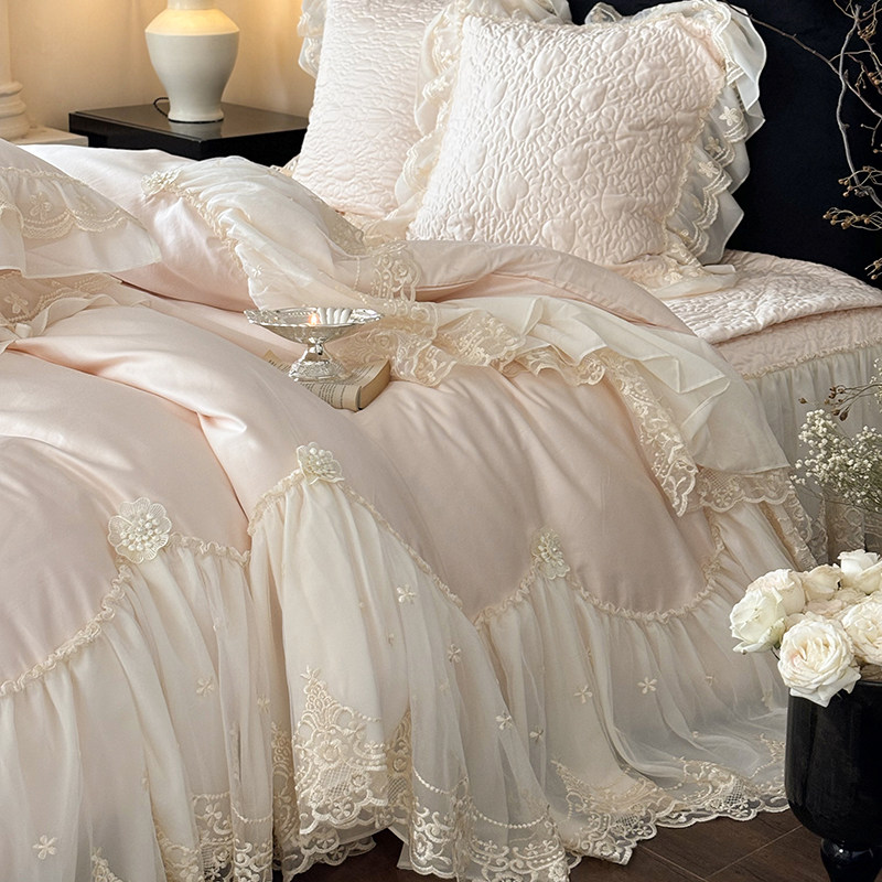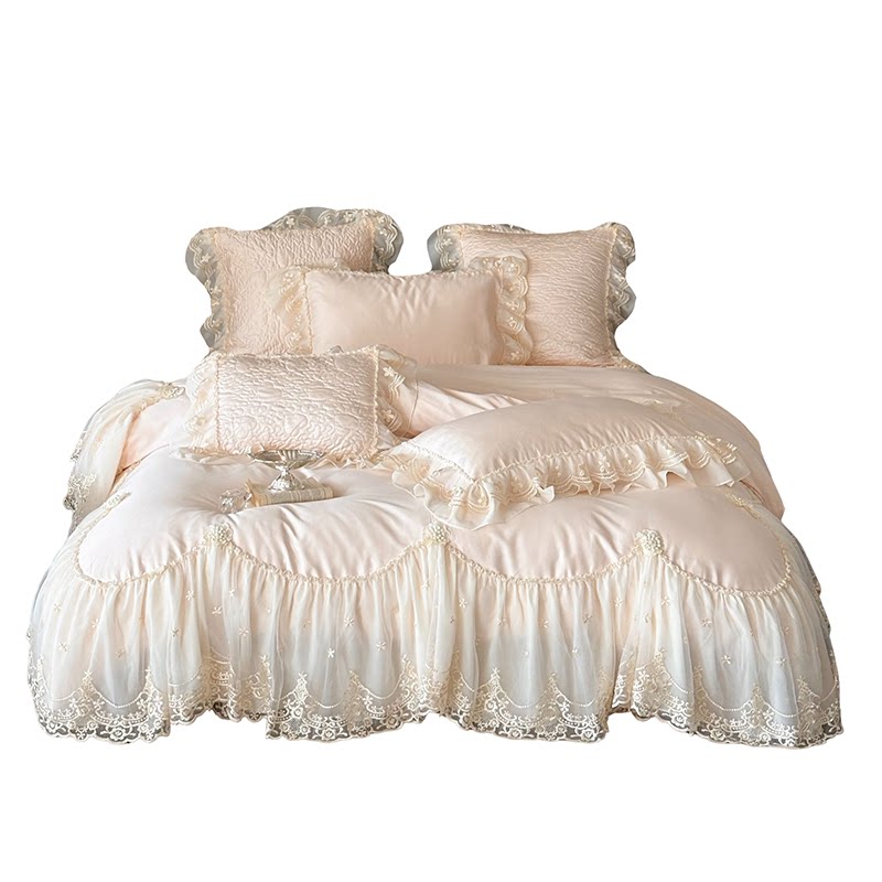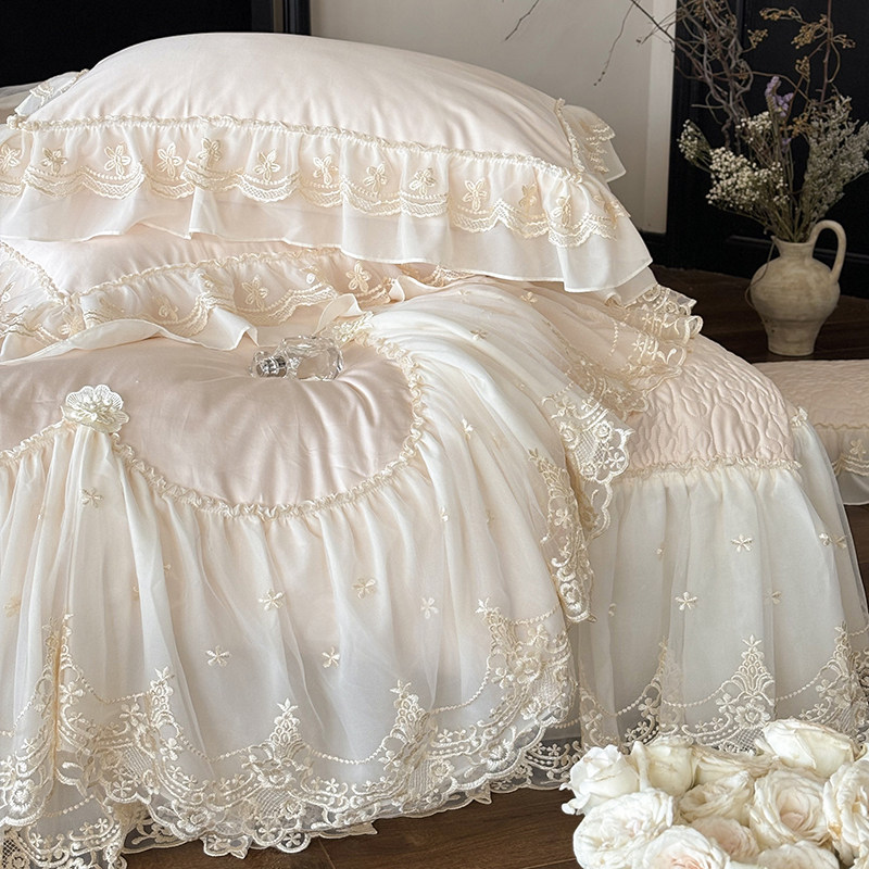 冬季粉色加绒床盖婴儿绒四件套牛奶绒蕾丝被套珊瑚绒公主夹棉床裙