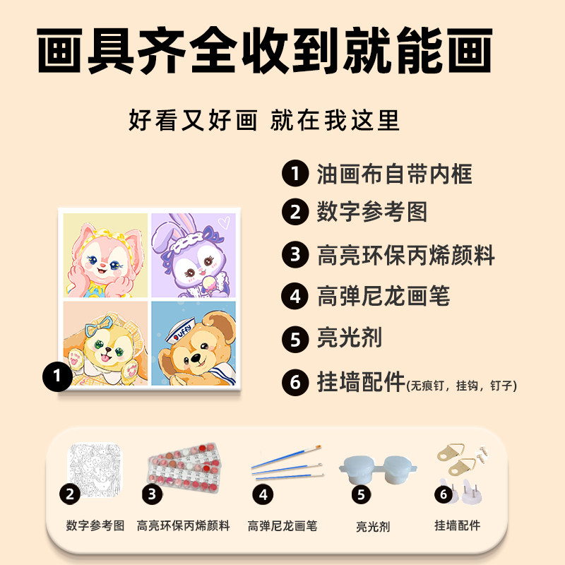 迪士尼七宝数字油画diy填充填色手工绘玲娜贝儿星黛露丙烯装饰画